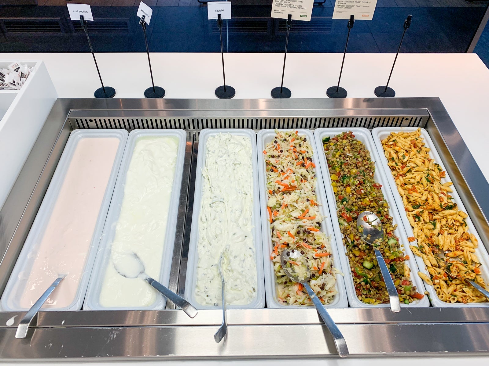Take a look at the unappetizing eggs and beans, breakfast meats, salads and yogurts.