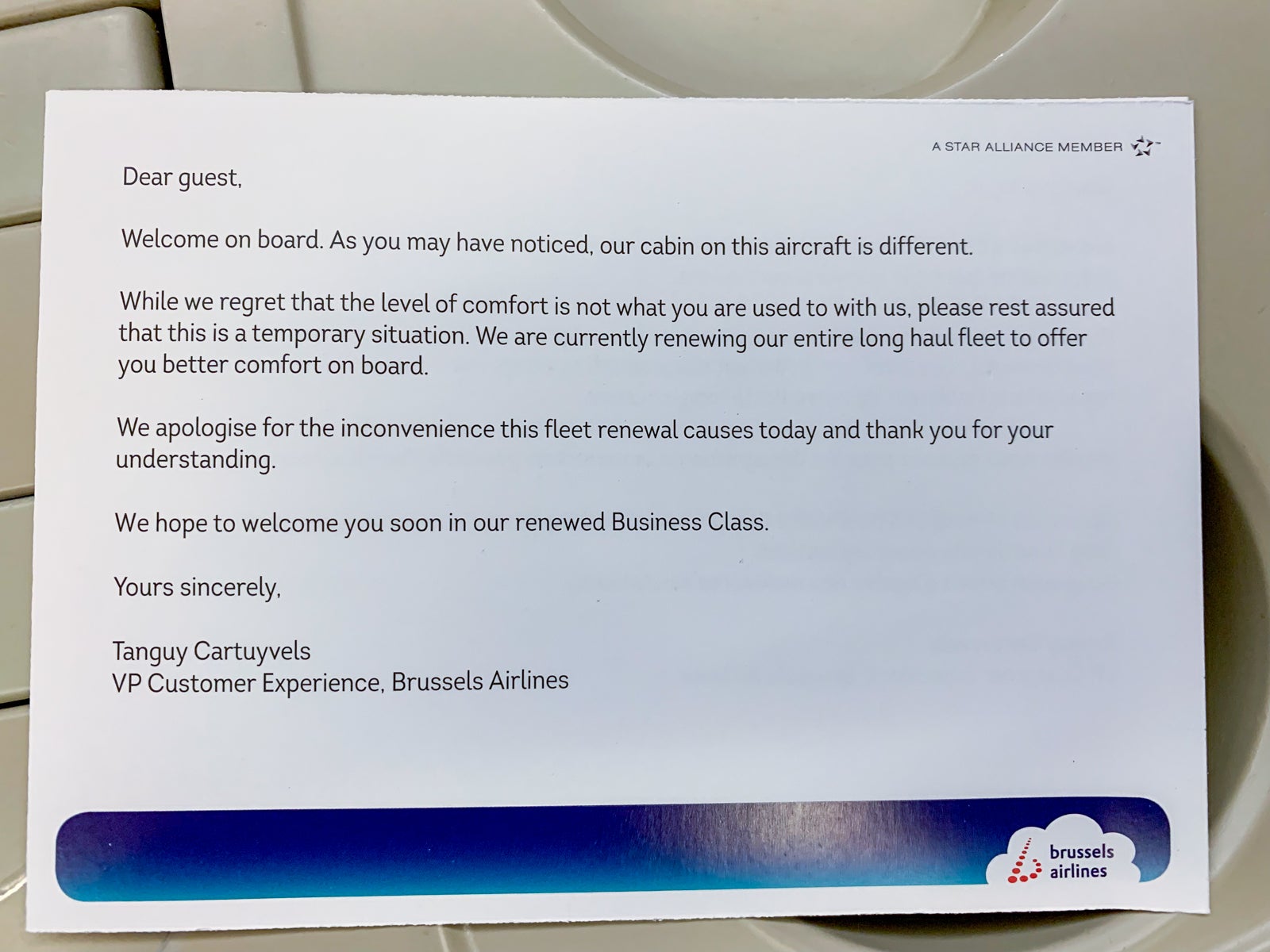 It certainly felt like Brussels Airlines was trolling me when I got onto the flight to BRU and found a card advertising the new business class.