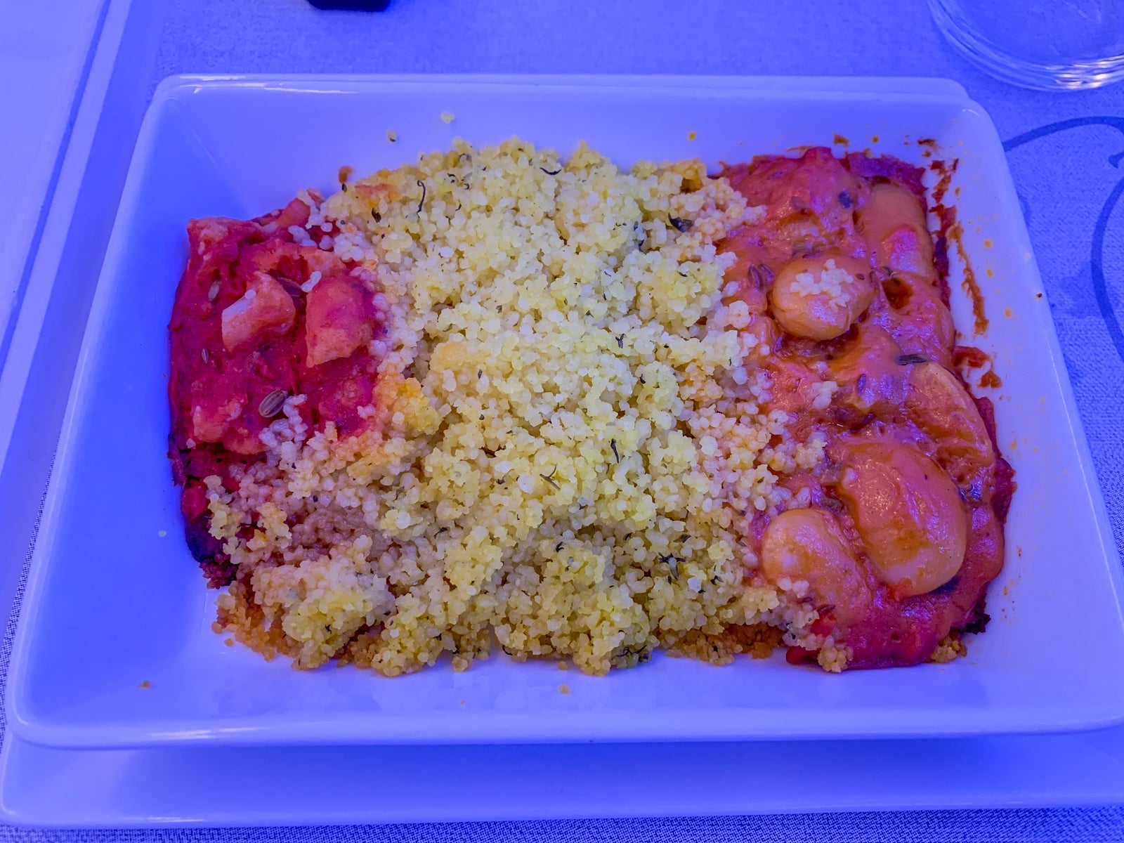 The mains were finally served 30 minutes later. I really enjoyed the beans and cauliflower with tomato sauce and couscous, while my fellow passengers had the choice of grilled veal, sea bass with squid or pesto spaghettini.