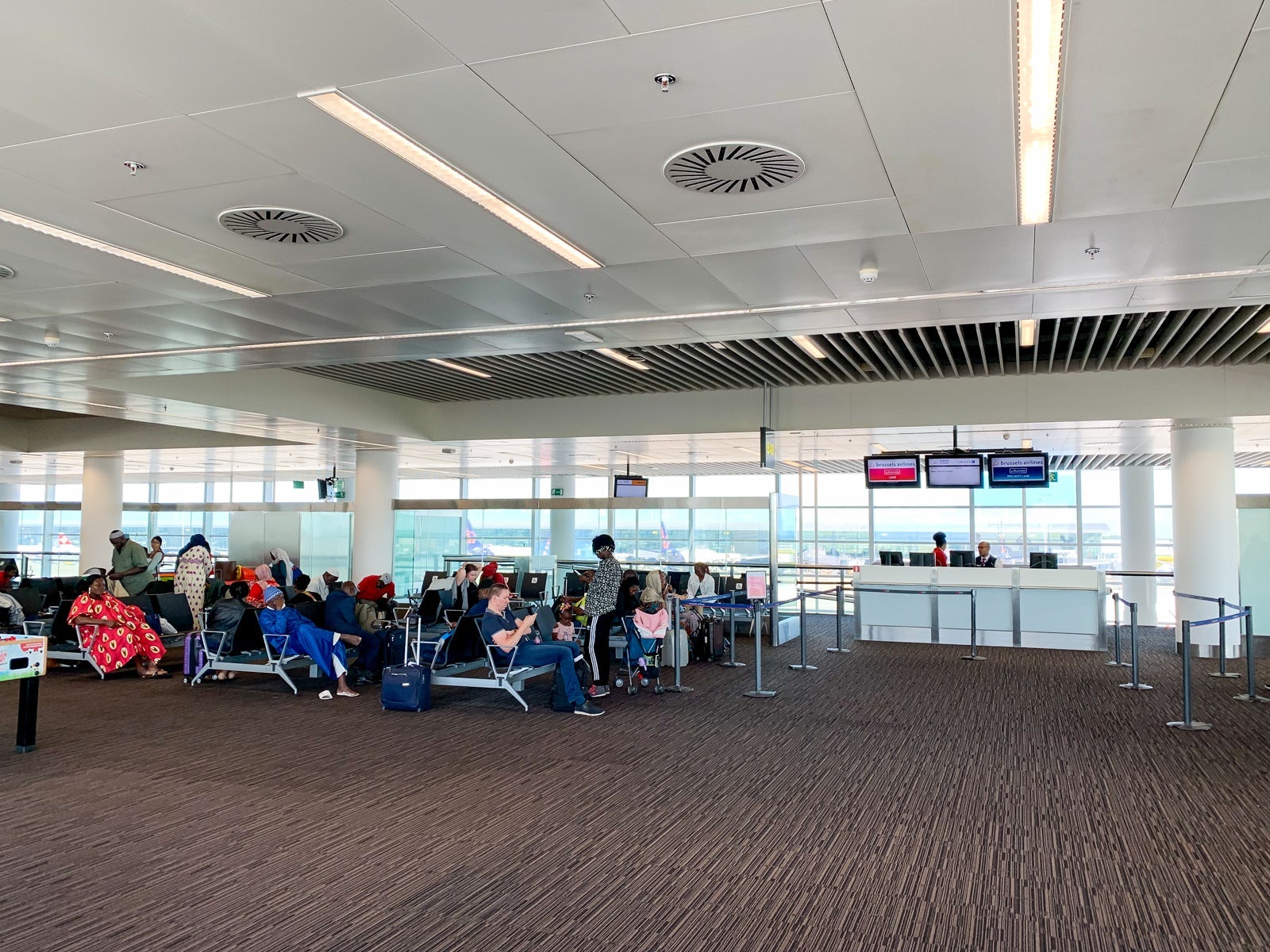 Brussels Airlines flights to the US left from the end of the B Concourse, near Gate B40. There was an additional security check to enter the gate area, and I was thrilled to find seating and space in the sterile US-bound departure area.