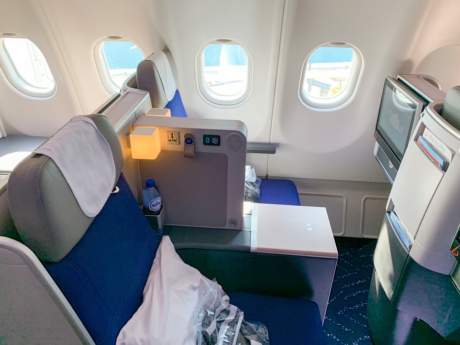 Aside from the IFE, pillows and amenity kits were waiting on the seats during boarding, and comfortable blankets were distributed after takeoff. Don't expect any pajamas or mattress pads on Brussels Airlines.