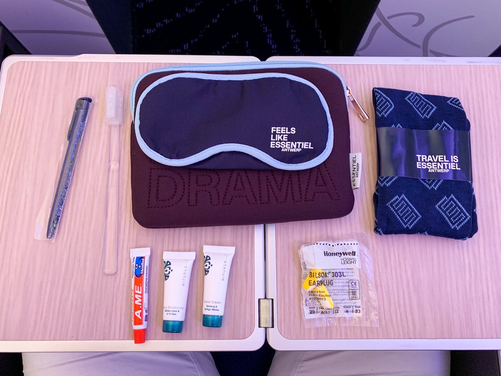 The amenity kits were designed by Essentiel Antwerp, and, yes, they contained the essentials like Rituals hand cream, dental kits, eye mask, earplugs, socks and a pen.