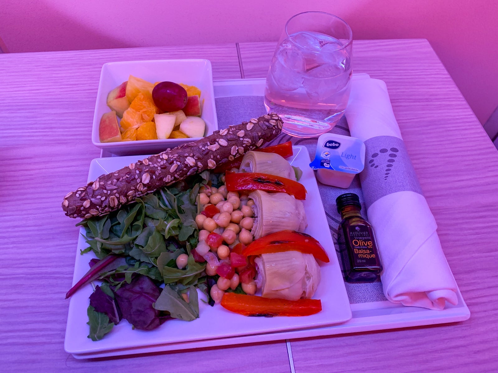 The snack service was an hour before landing. At this point, I wasn't hungry but was happy to see that the snack was at least pretty healthy.