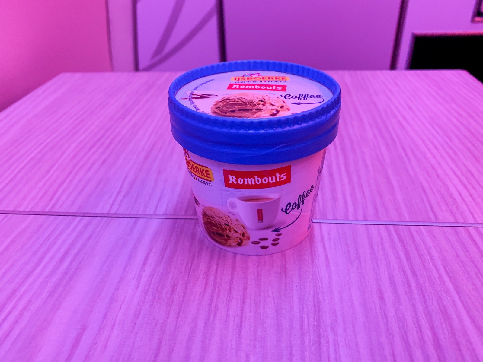 To satisfy my sweet tooth, I enjoyed a cup of coffee-flavored IJsboerke ice cream.