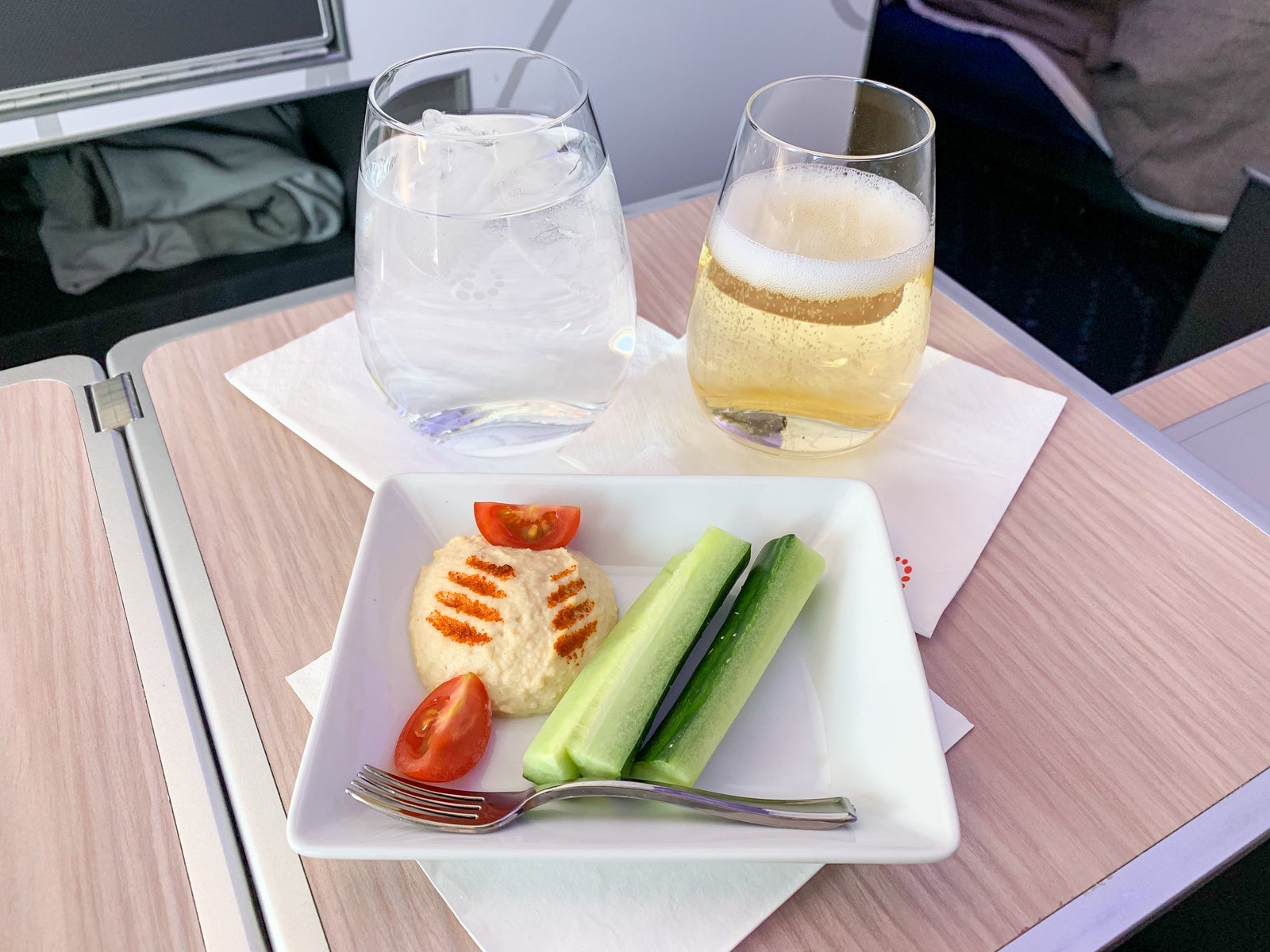 Just like one might be impressed by the curated selection of food and drinks at a boutique hotel, I was similarly impressed with the food and beverage offerings on my "boutique hotel" flight.