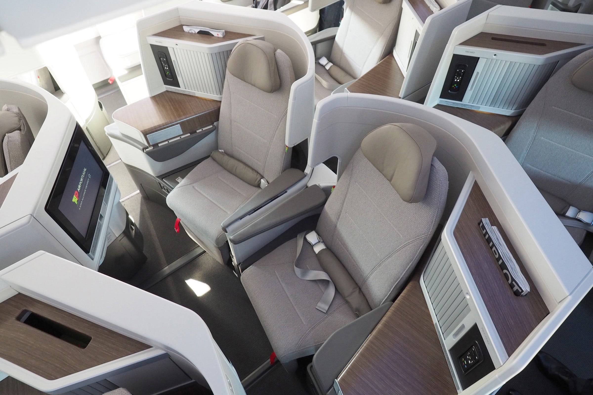 TAP's business-class cabin consists of 34 seats in a 1-2-1 configuration, and sports Recaro's new CL6710 seat — the same model you'll find on El Al's Dreamliners. These seats will eventually be added to all widebody TAP aircraft, with the upcoming retrofit process expected to be completed by the end of 2020. They're a big improvement over TAP's current product, so I'm glad they'll be available fleet-wide soon.