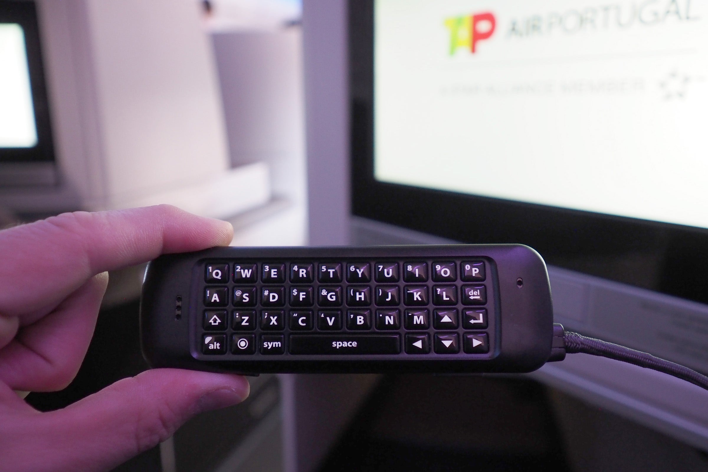 The remote had a keyboard on the reverse side — presumably to message other passengers on the flight.