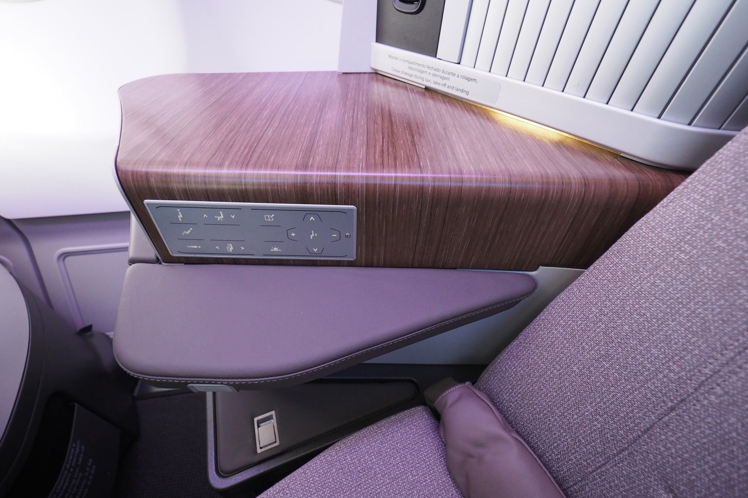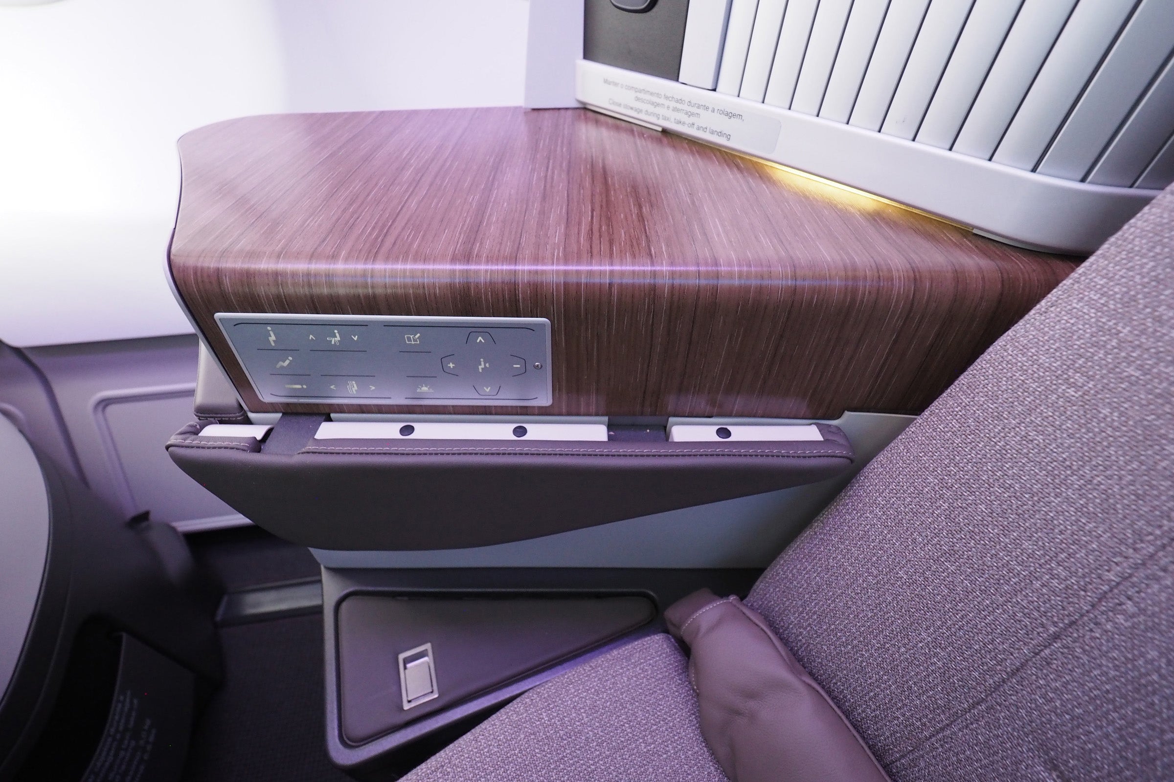 Some rows have center seats positioned next to one another, in a "honeymoon" arrangement, while others have seats next to the aisles — while the side-by-side seats are great if you're traveling with a companion, there isn't a center wall available to divide the space, which could make things a bit awkward if you're flying next to a stranger.