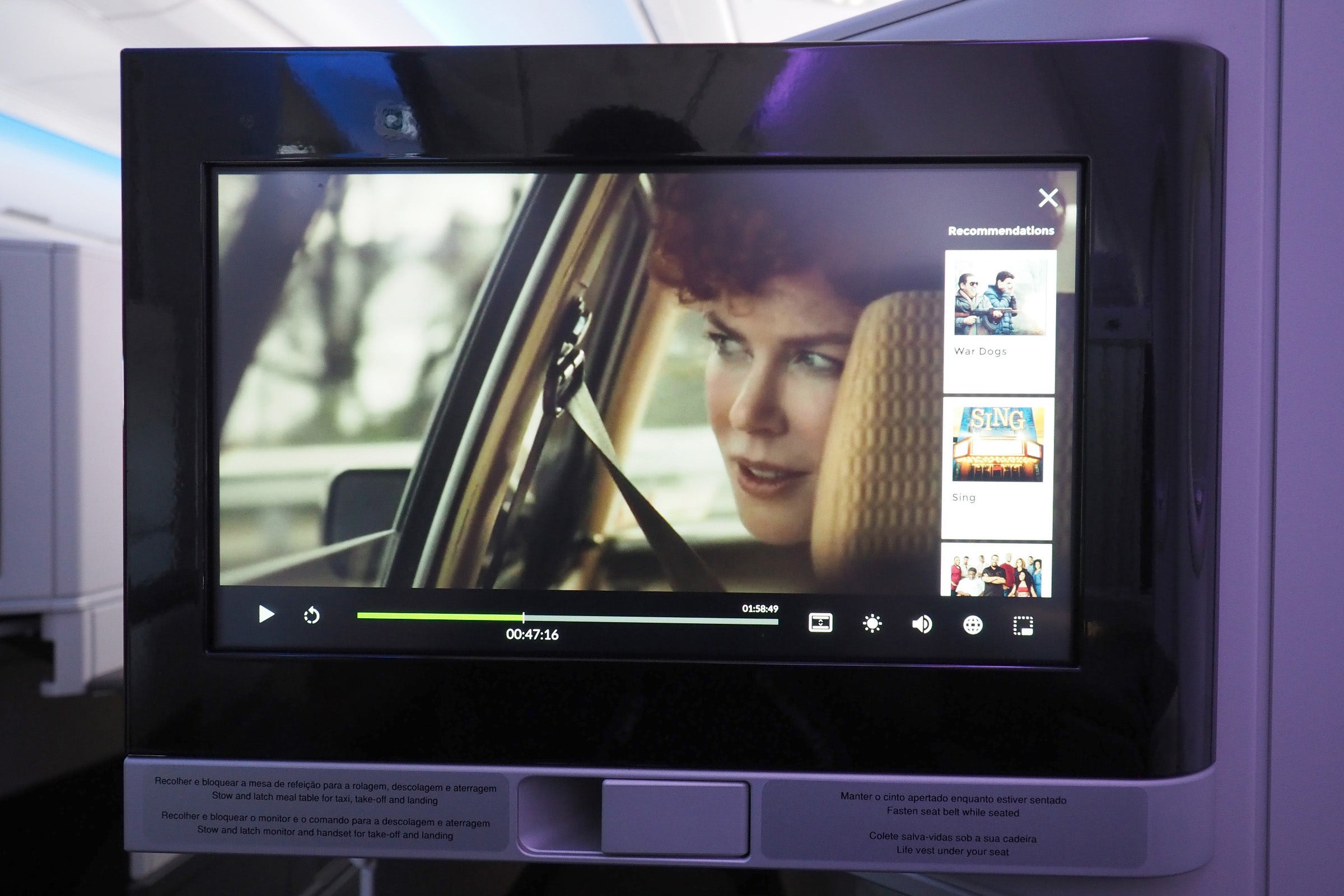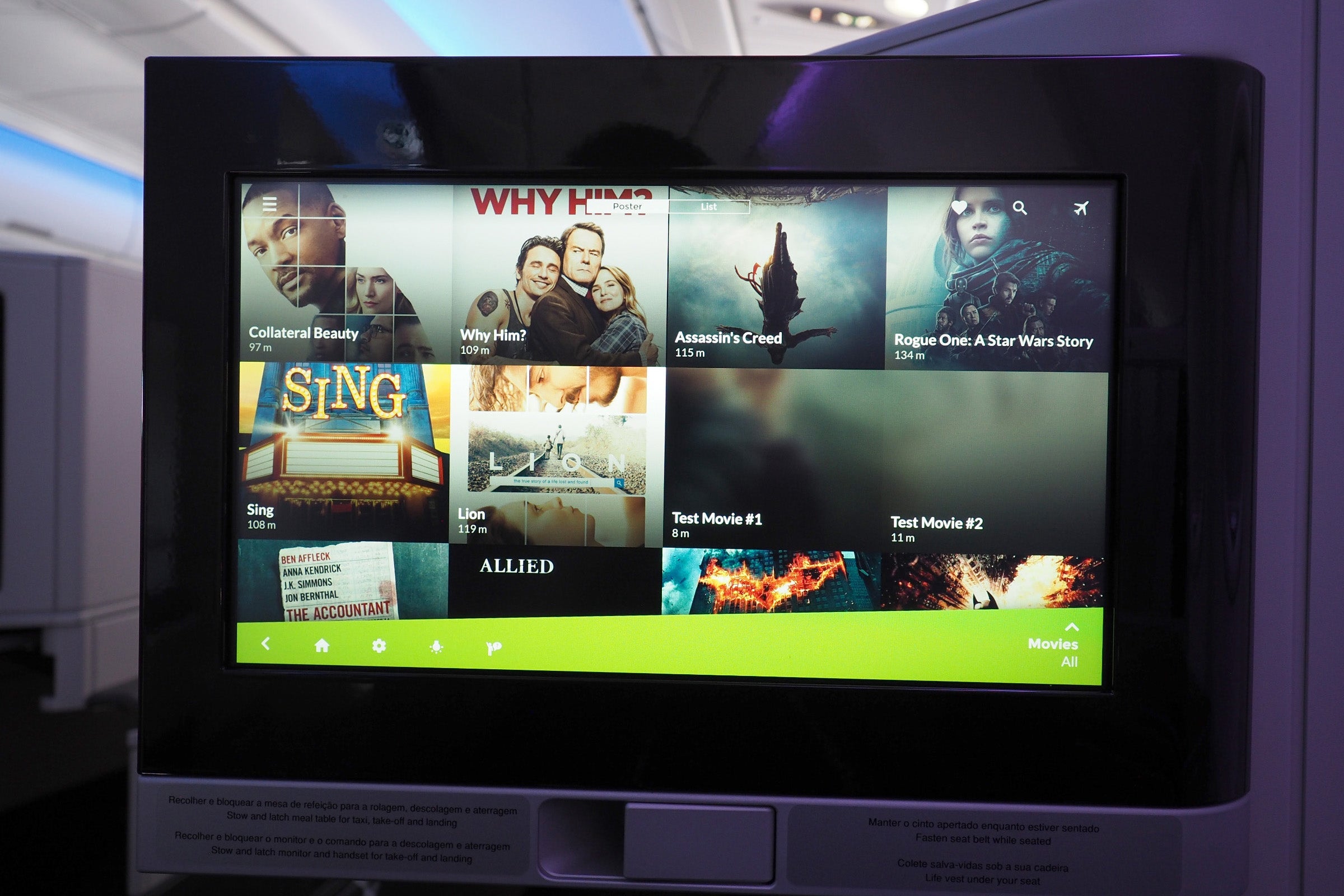 There were a small number of movies to choose from — presumably to test the system and help entertain off-duty staff during the 150 hours of flight testing — but some of the content clearly had yet to be loaded.