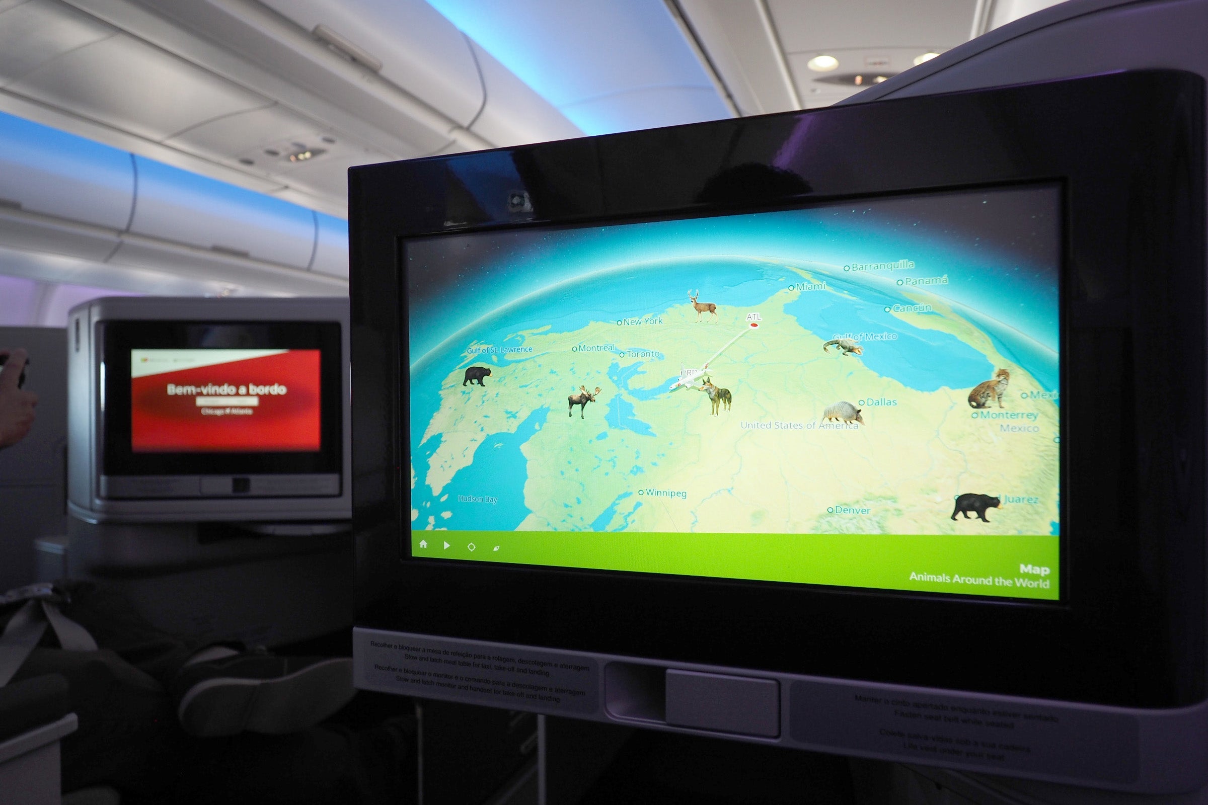 I came across a fun kids-friendly map, above, along with the typical high-res adjustable map you'll find installed on most modern long-haul planes. There didn't seem to be any live camera views available as you'll find on the A350, though.