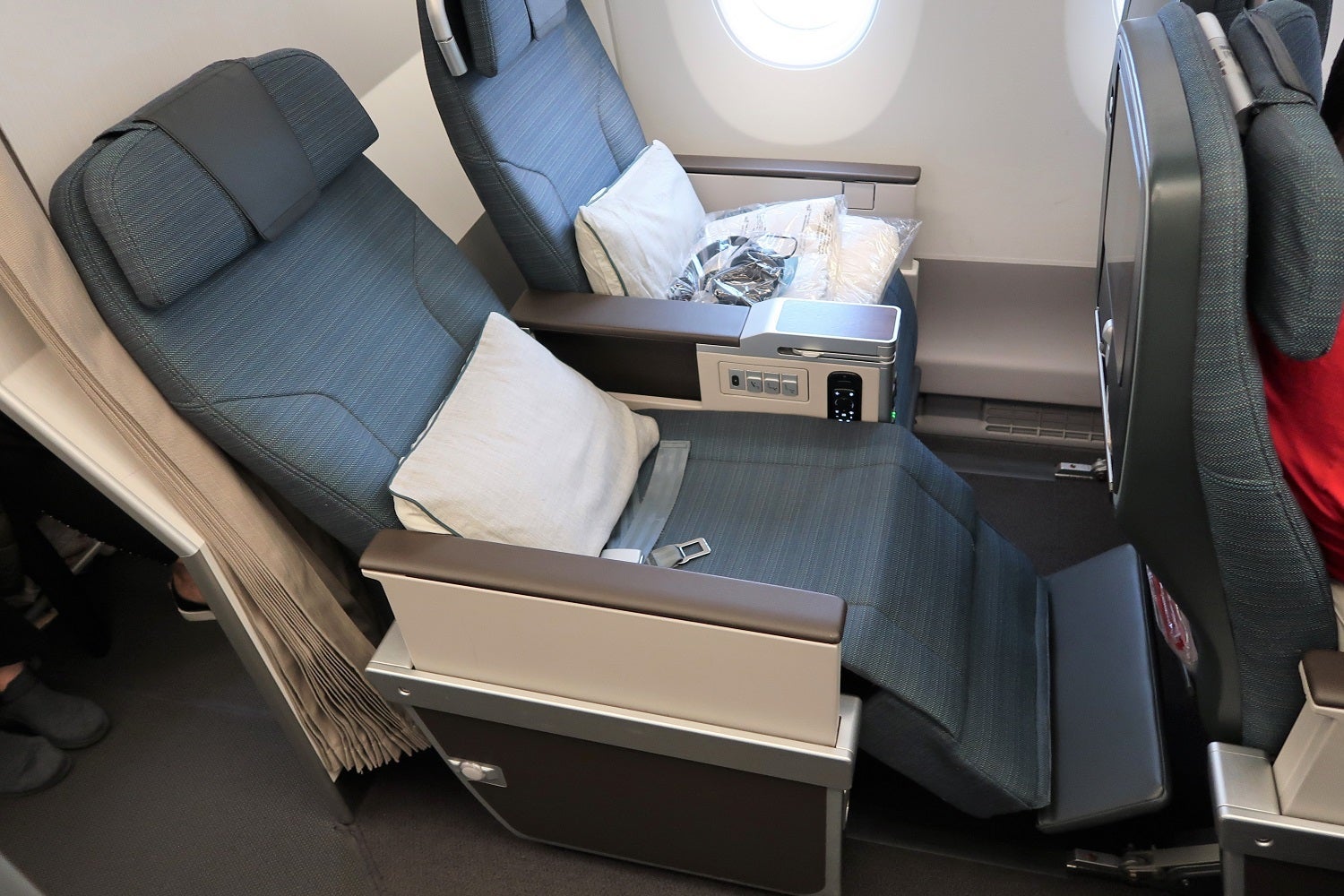 The older 777 cabin had its downsides, but the premium-economy seats were certainly more plush and padded than the slimmer seats on the A350. I slept much better on the 777 flight than on the A350.