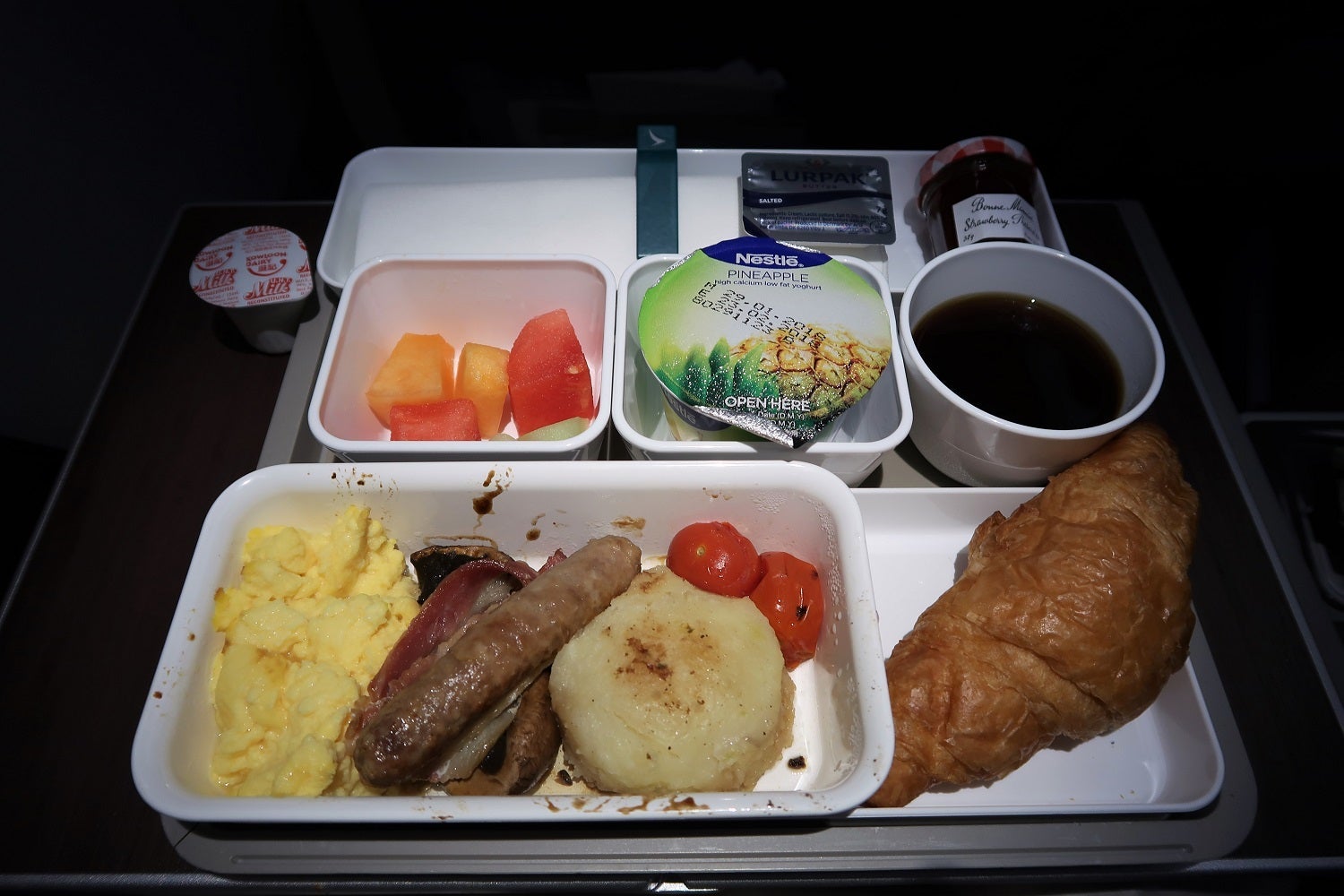 On both flights, the food was just OK. Although premium economy had a different printed menu than economy (yes, economy also had a printed menu), it seemed that the meals were the same as economy. And some of the meals were especially disappointing, such as the breakfast before landing in Newark.