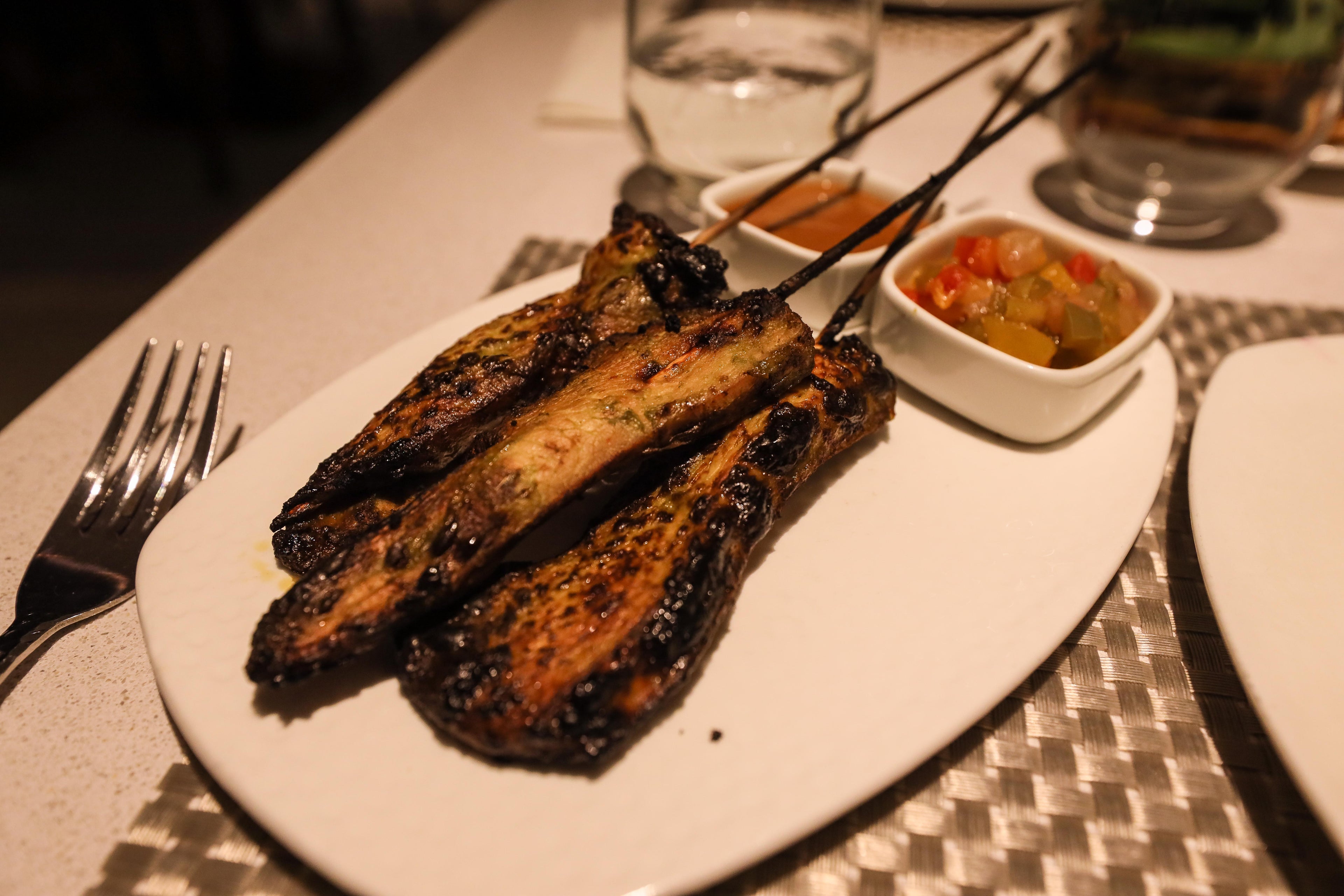 Sit-down, à la carte service. I ordered chicken satay and the grilled salmon with potato mash, and both were hot, fresh and tasty, and came quickly. The salmon with its crispy top was particularly nice. As a hummus obsessive, I also tried the hummus and pita offered but was left disappointed by its wet grainy texture. You can't win them all!