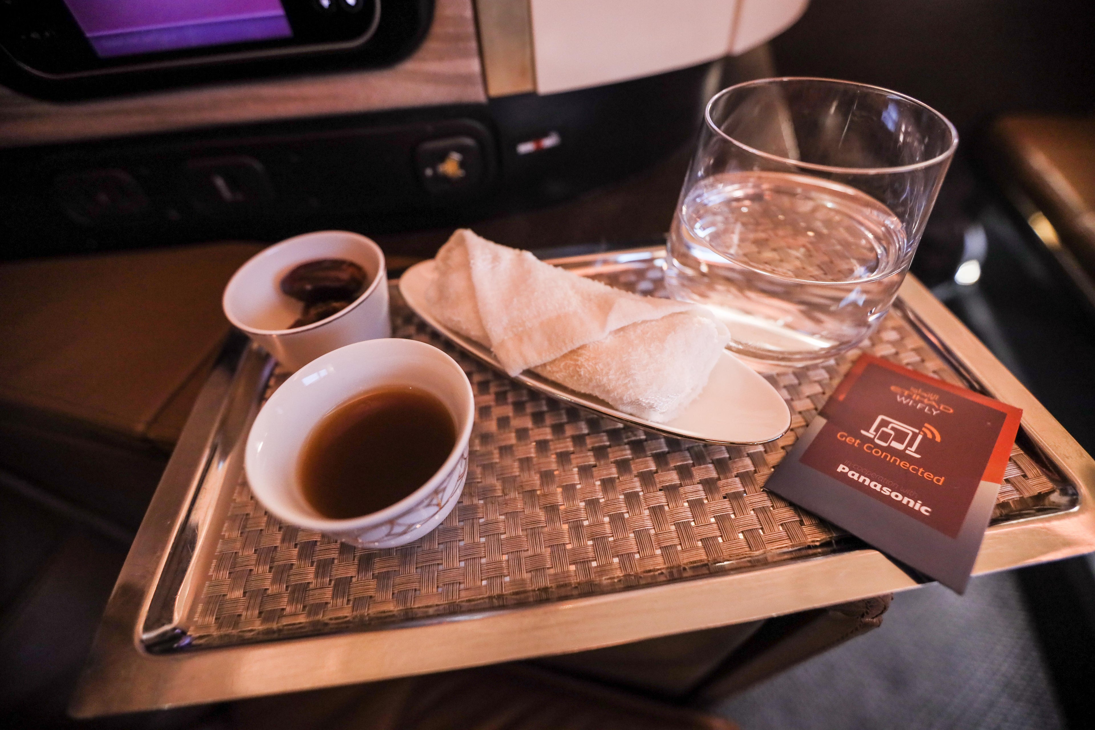When I woke up in the morning, I took a cappuccino, which was surprisingly good for a plane, but the foam was a little "cheap". The accompanying biscuits were a nice touch and they were crunchy and tasty.