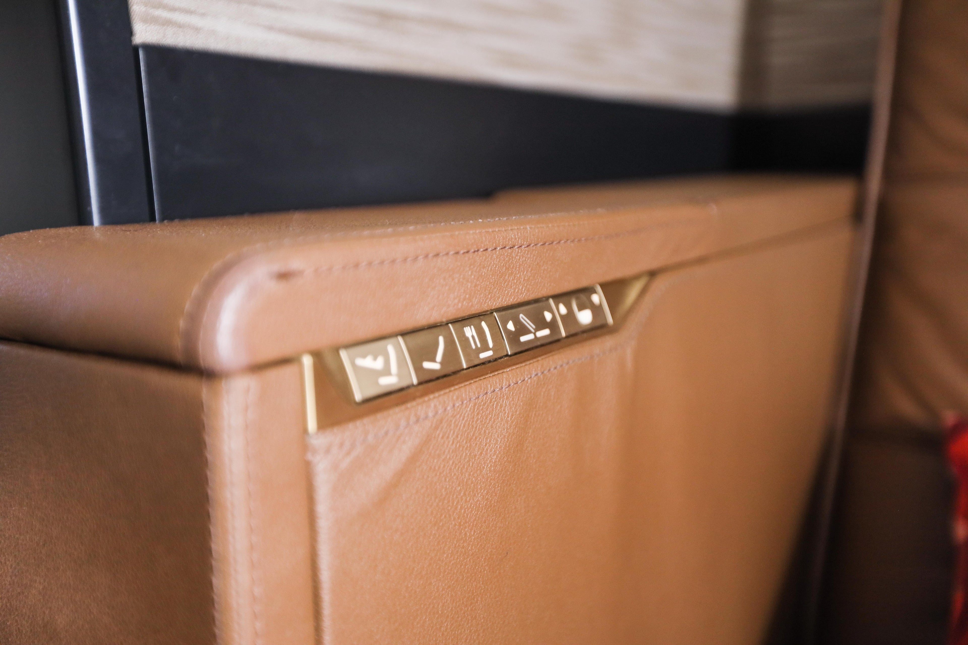 The seat is controlled by smart-looking buttons in the armrest. However, the seat only reclines a few inches. This is a slight annoyance. There were times when I wanted to really kick back and relax, but without going whole hog by getting into the bed. Recline aside, the seat is very comfortable.