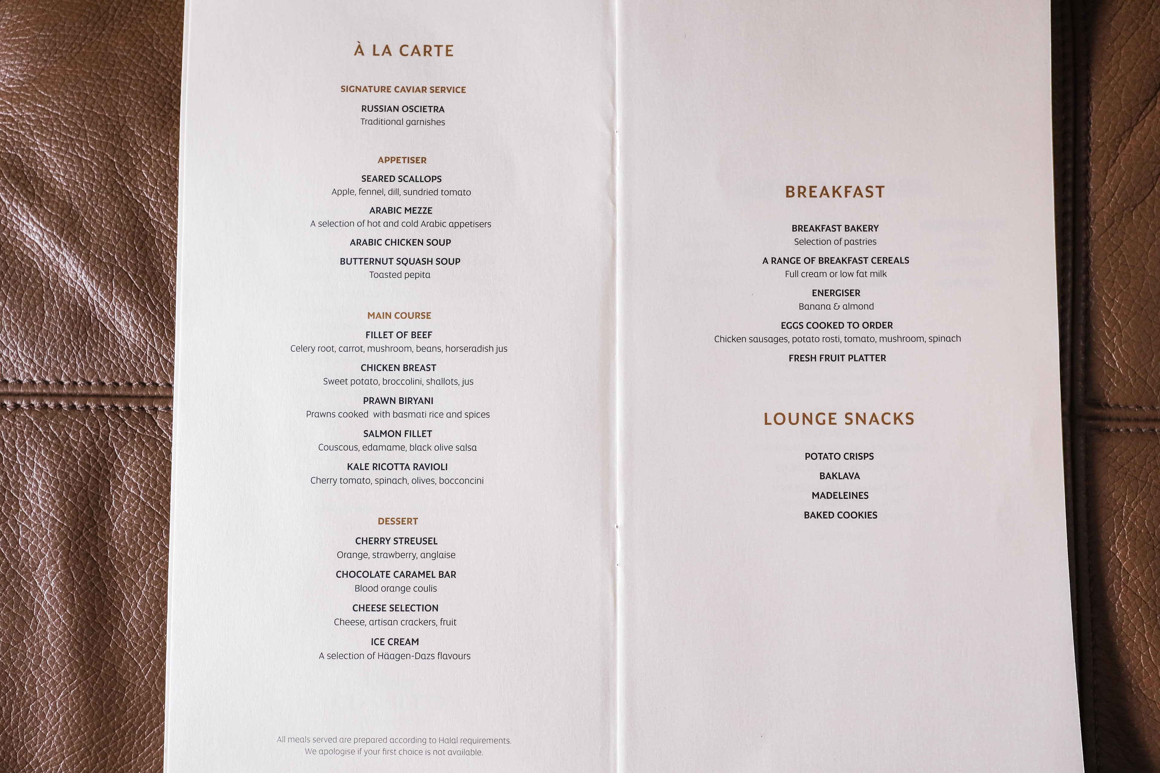 Menus were waiting on seats at the start of the flight and the onboard chef was excited to tell me that I could eat whatever I wanted, whenever I wanted. Did that include caviar for dinner and breakfast, I asked? The reply was a strong "Yes," and so my challenge was duly set and accepted.