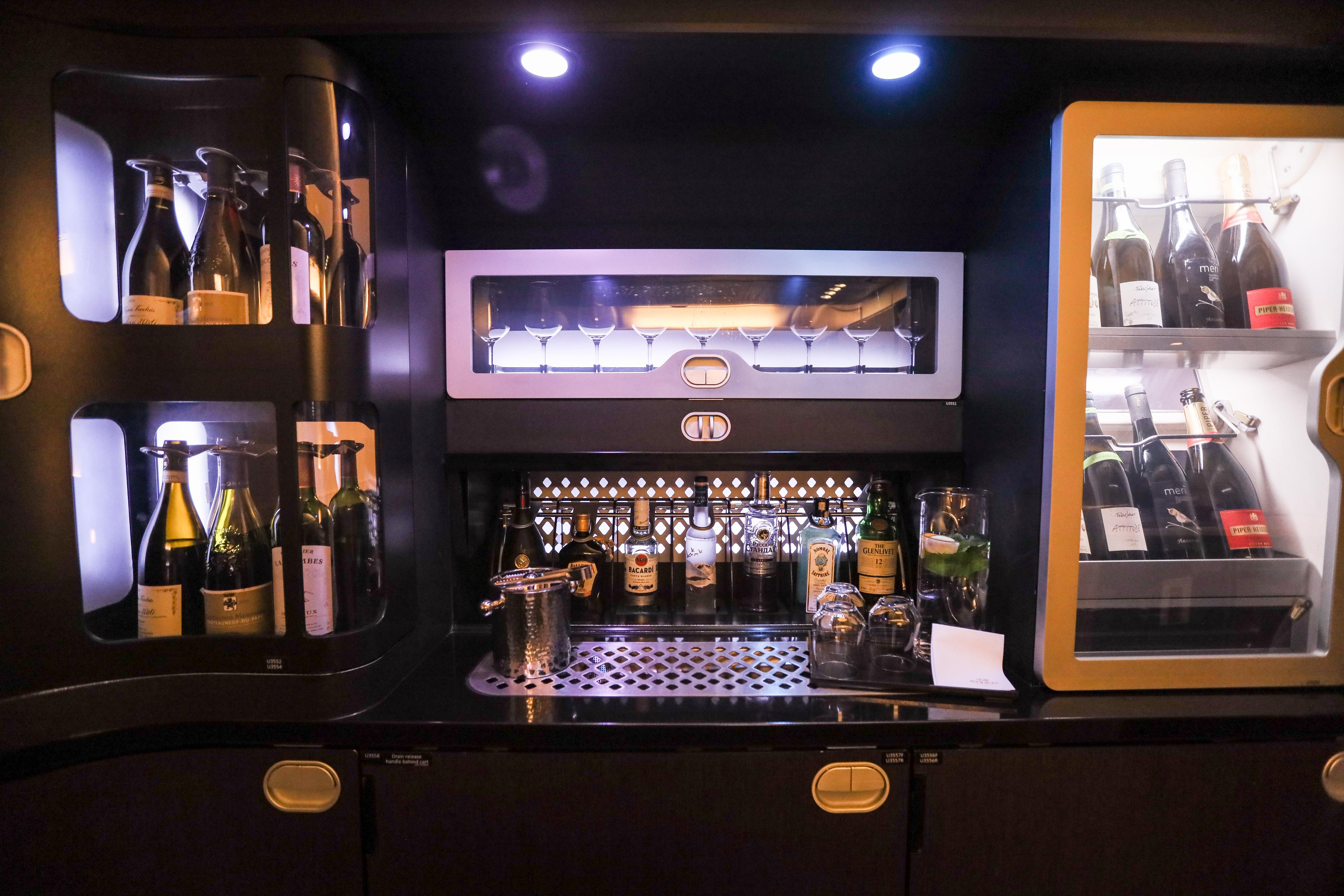 Also in this area is a bar, with premium spirits, wine and champagne. It's the most high-end self-serve bar setup I've seen in the sky.