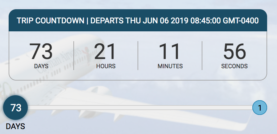 The airline thanked me for the purchase and had a nice countdown clock to my trip.