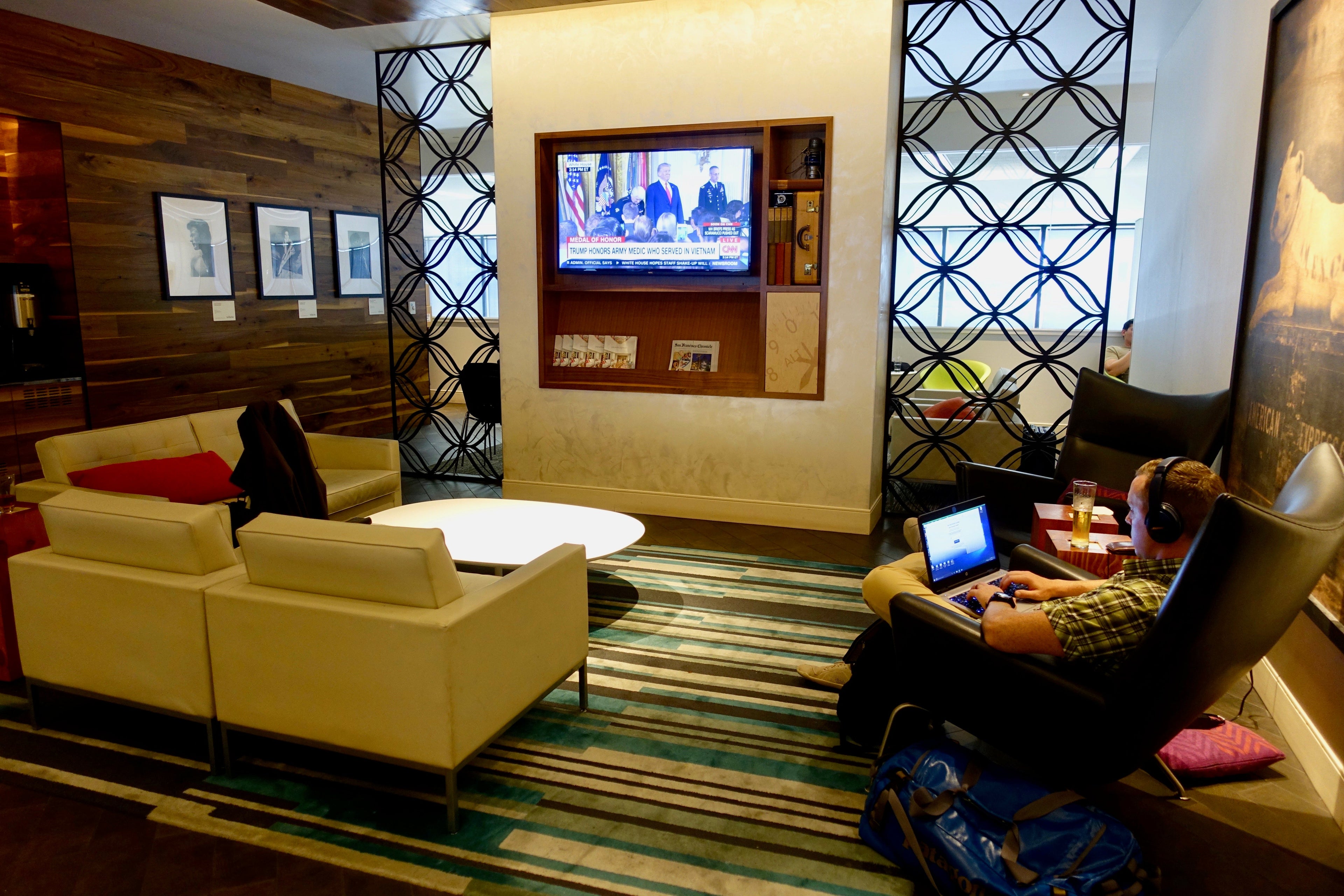 Also near the main check-in desk was a little nook with two couches, two chairs and a large flat screen TV with CNN playing in the background.