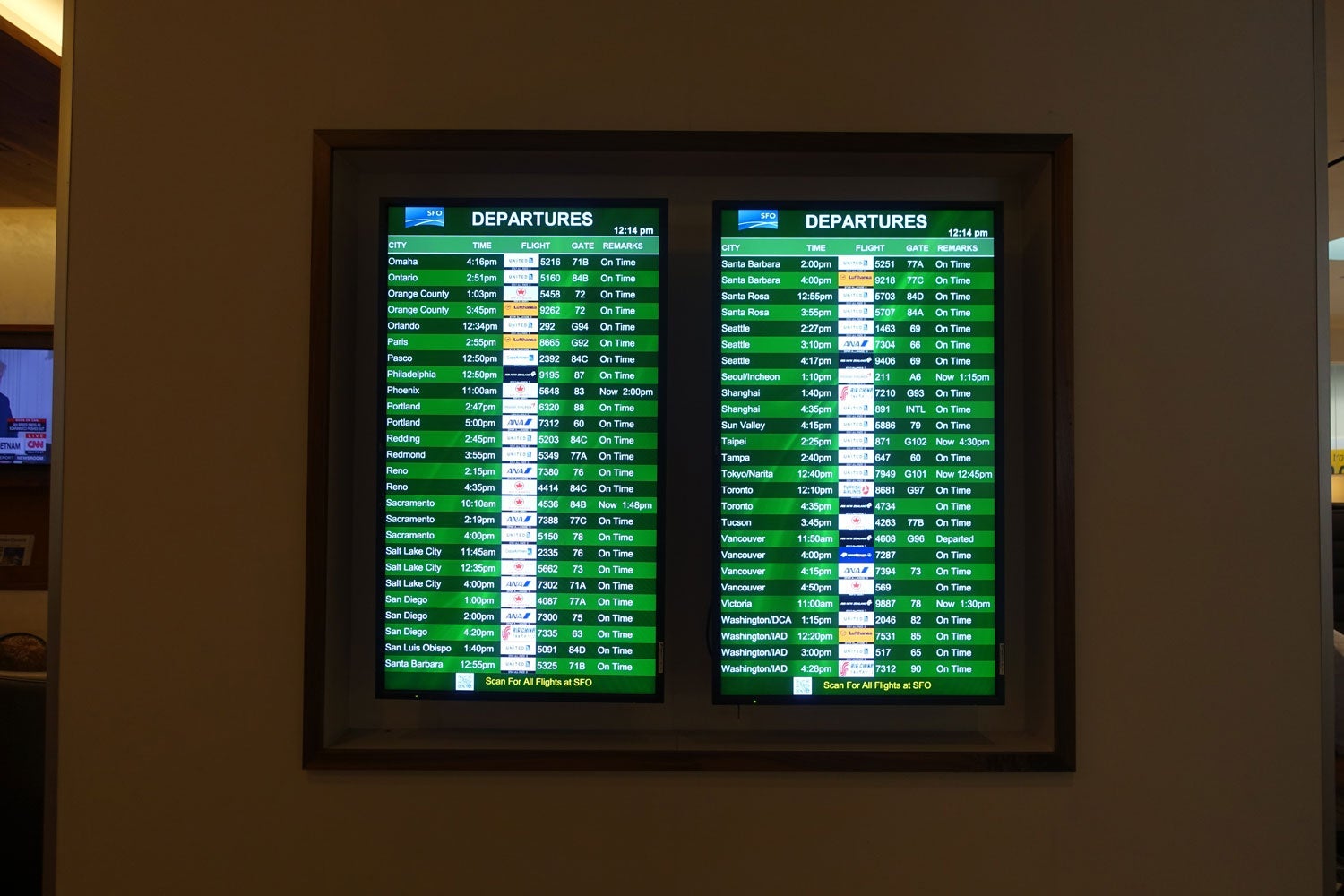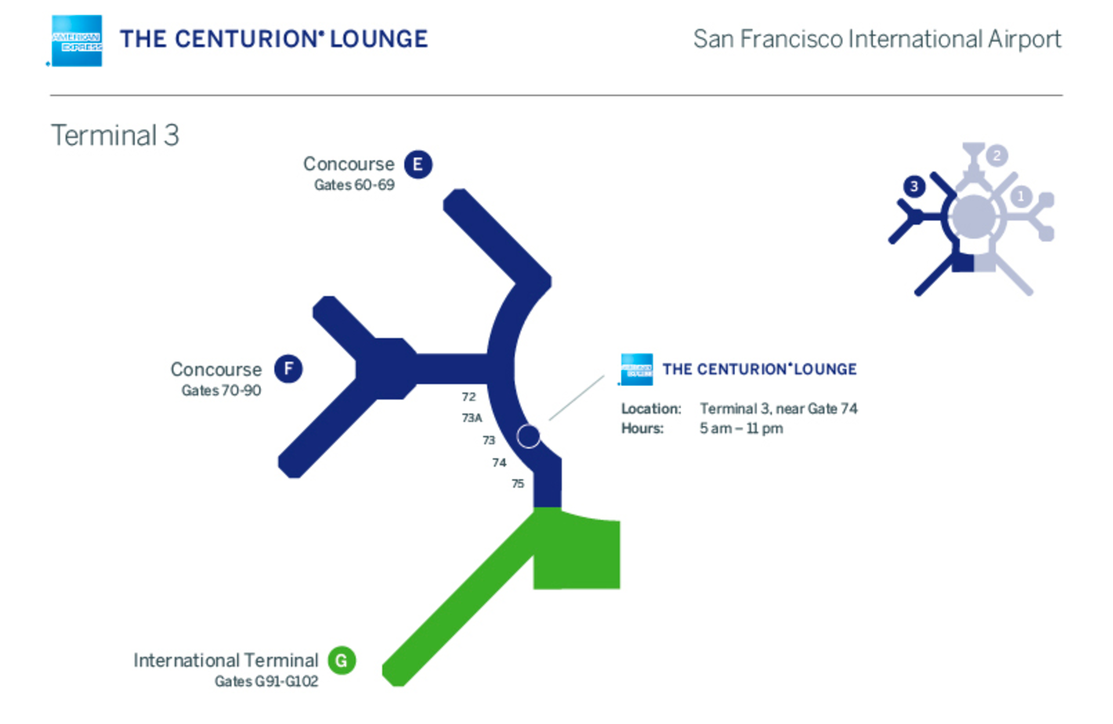 You'll find SFO's lounge in Terminal 3, Concourse F (after security) near Gate 74. It's open every day from 5:00am to 11:00pm.