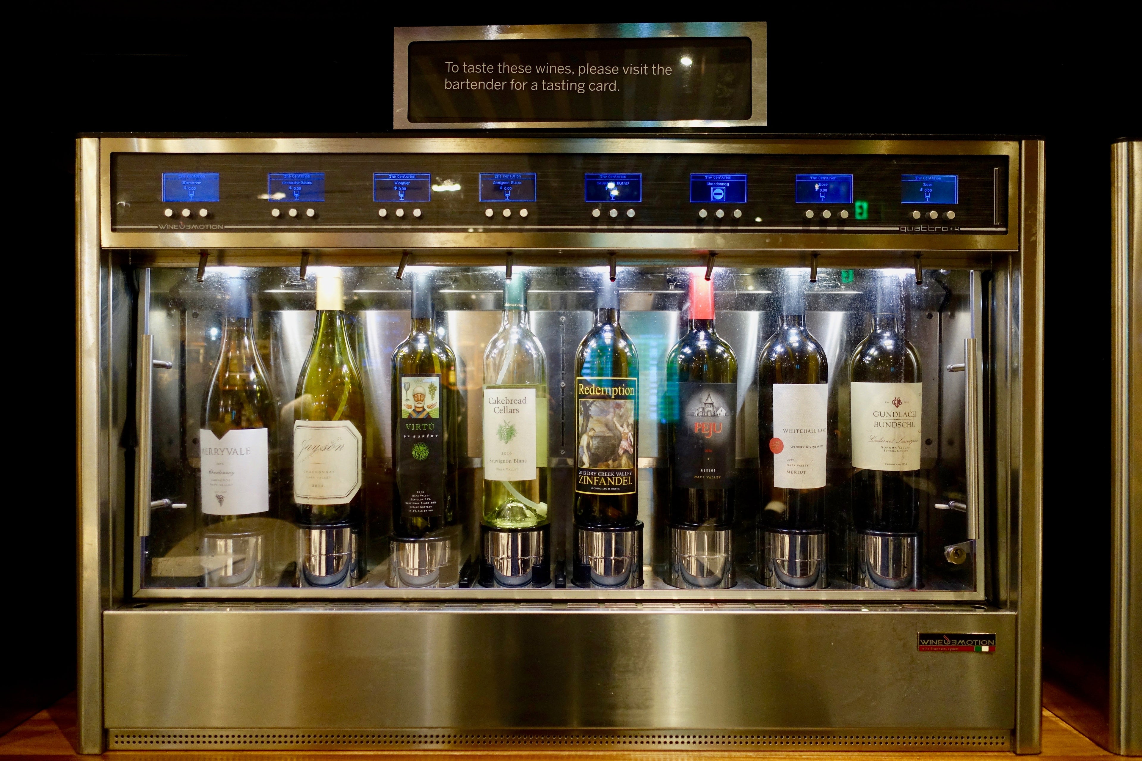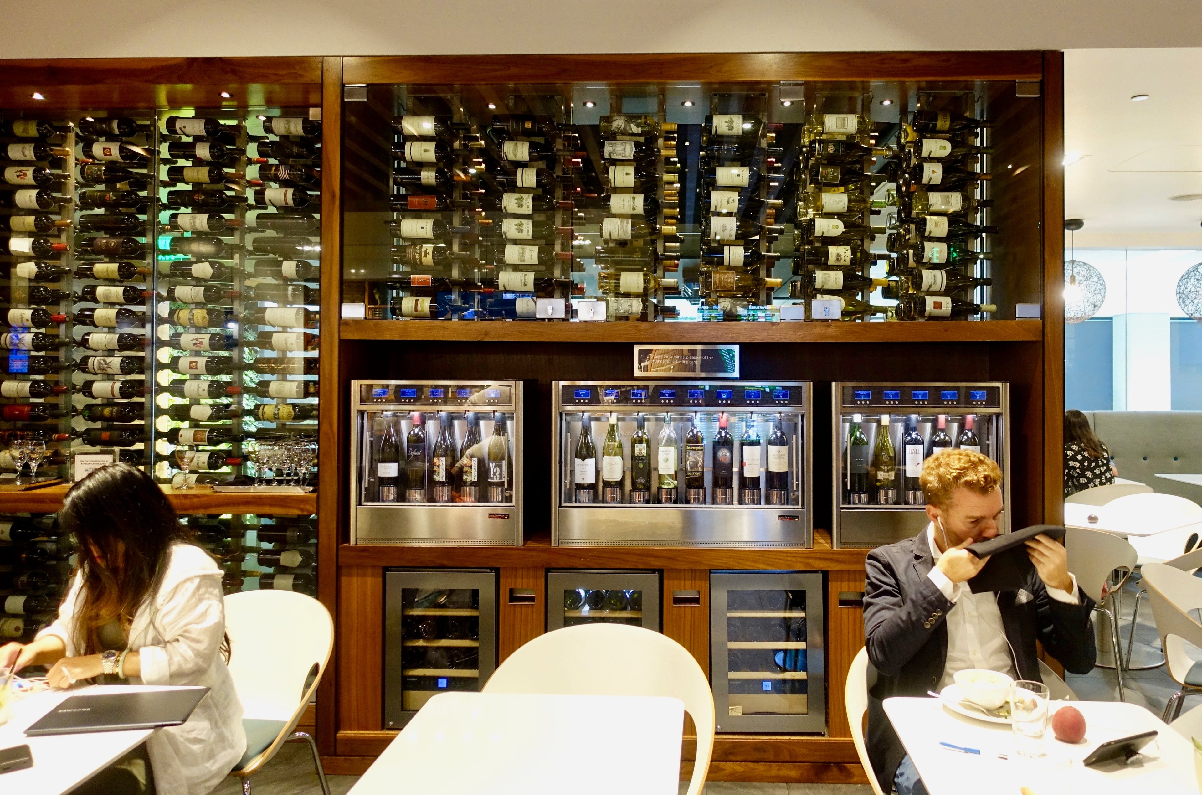 A special amenity at the SFO lounge is its complimentary wine tasting. To get started, simply go up to the bartender and ask for a tasting card, a receipt that gives you five free pours from the automatic wine machine.