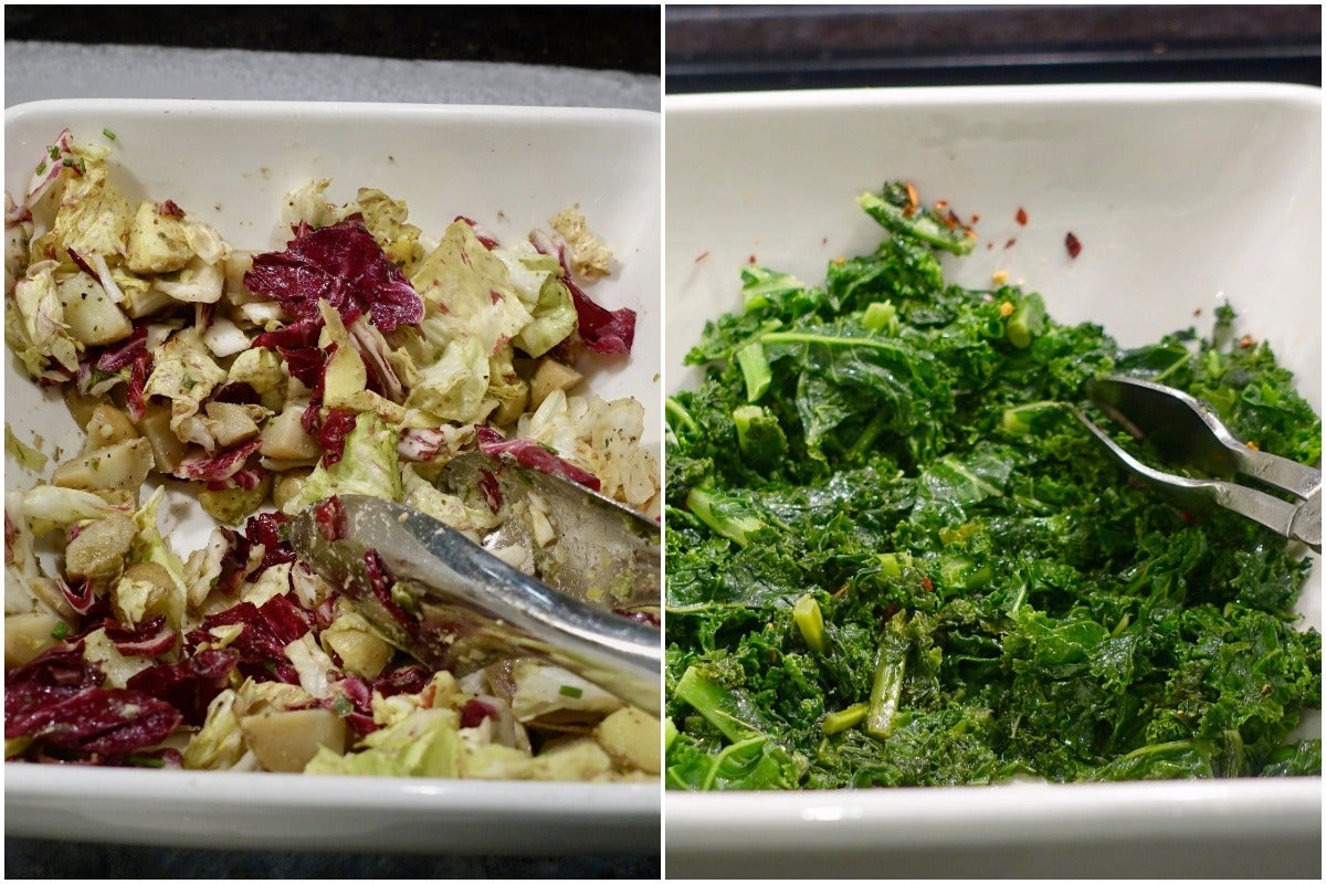 I'm not much of a vegetable fan, so for the sake of the review, I helped myself to a small serving. Below, on the left, is farro salad with shaved fennel, feta, lemon and mint; pictured on the right is sautéed kale with lemon chile flakes and extra virgin olive oil. Both tasted incredibly fresh.