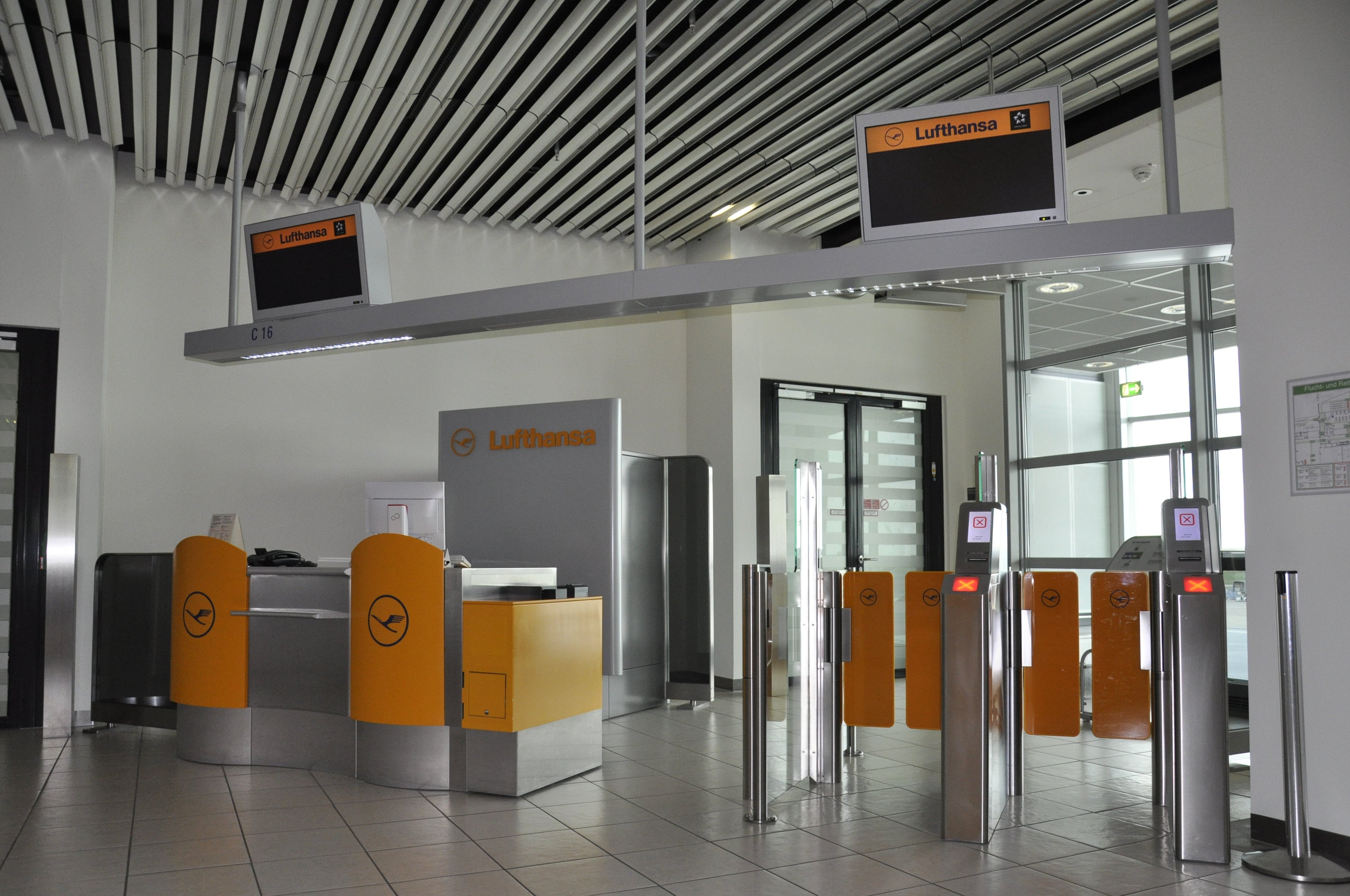 Unmanned desk inside the Lufthansa Business Lounge, FRA Concourse C