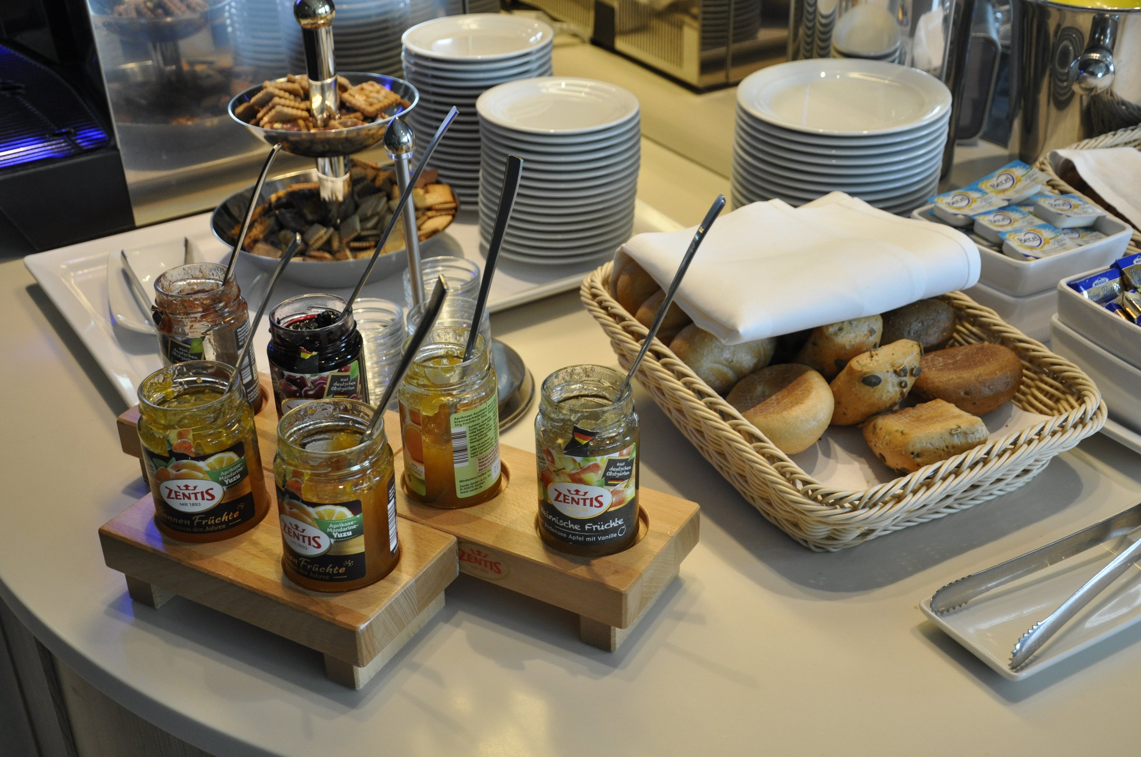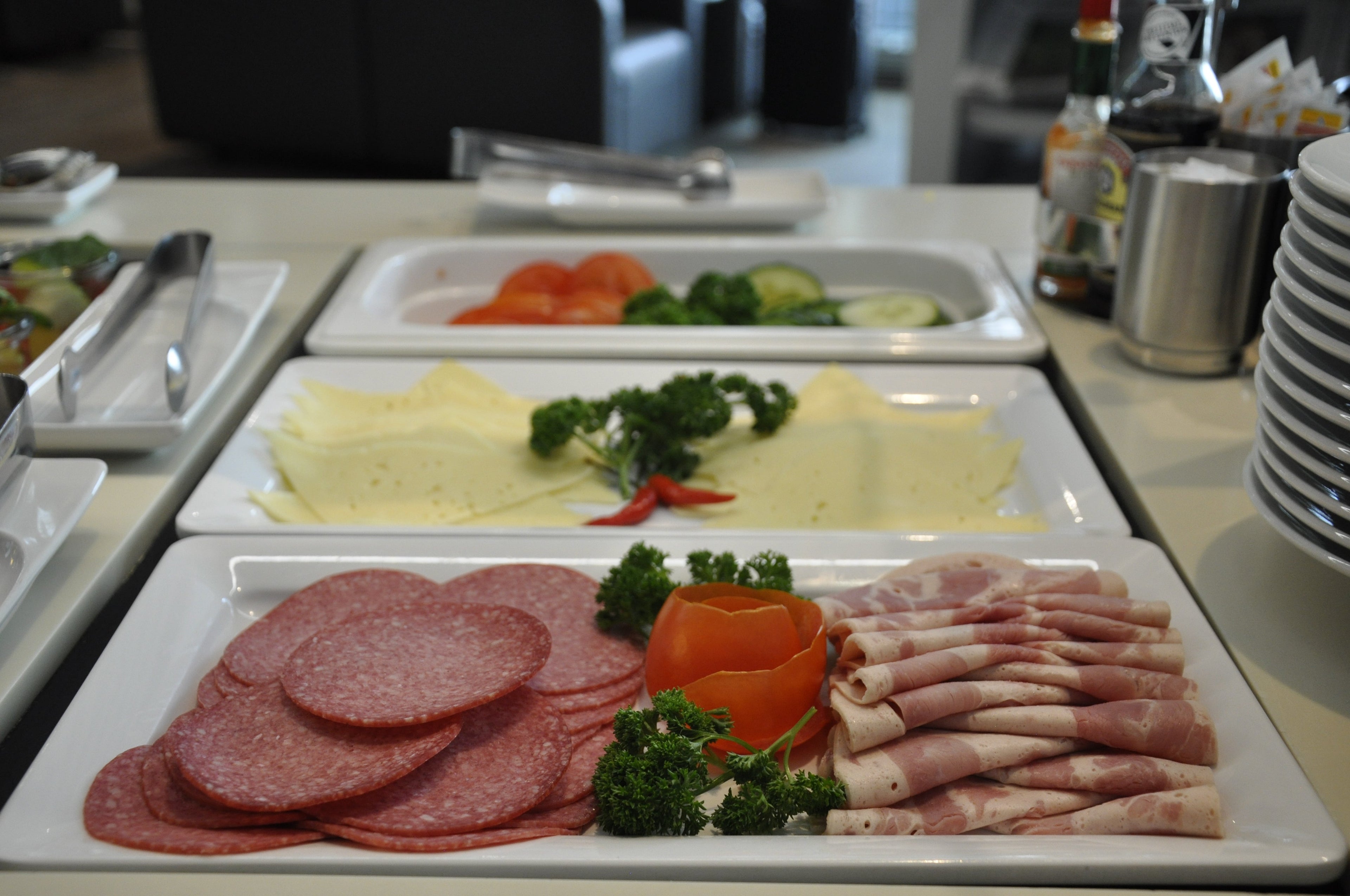 Knowing I was about to board a 10+ hour transatlantic flight with meals, I didn't partake of any of the food options, which included cold cuts, cereals, yogurts and various breads.