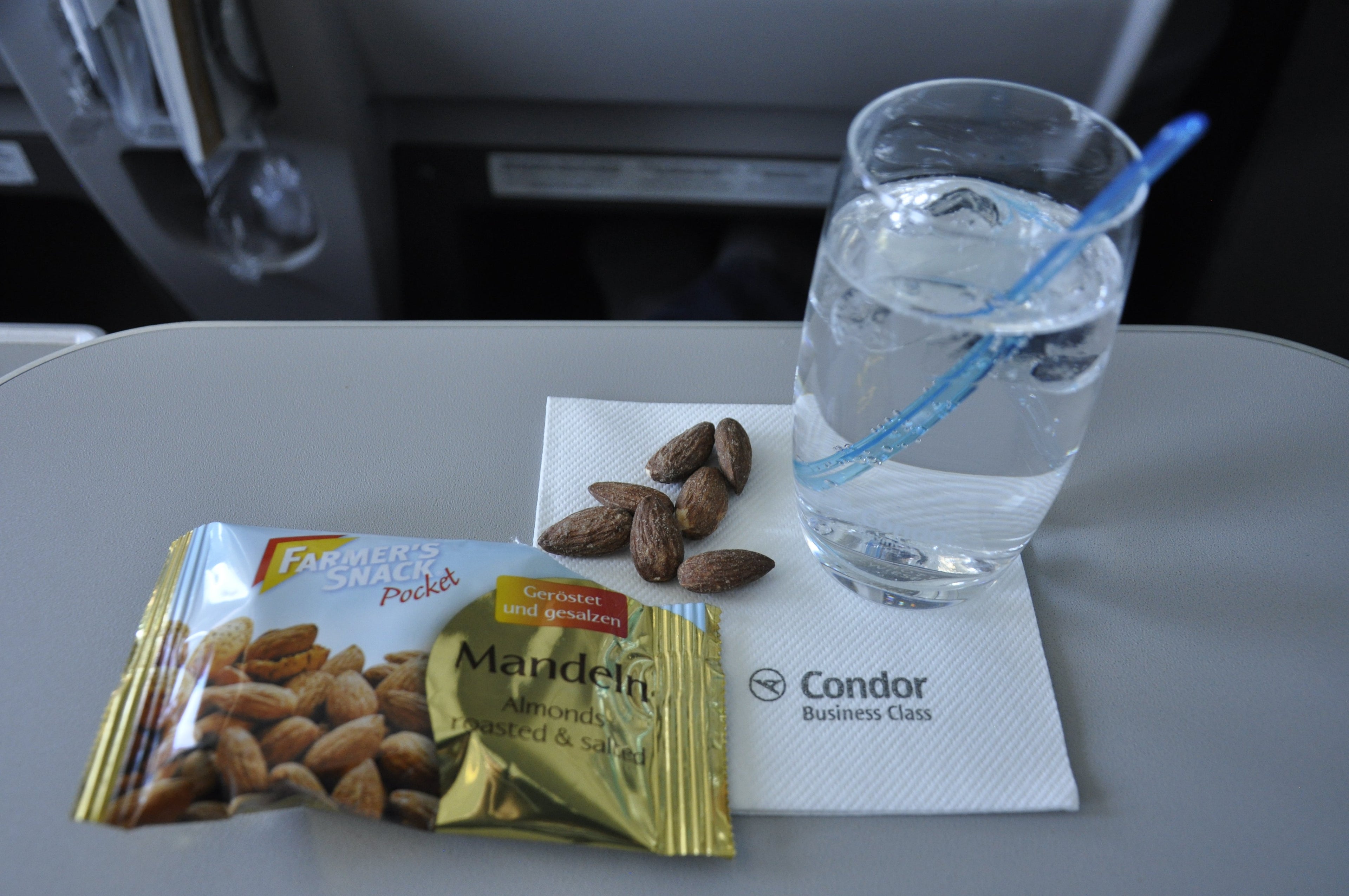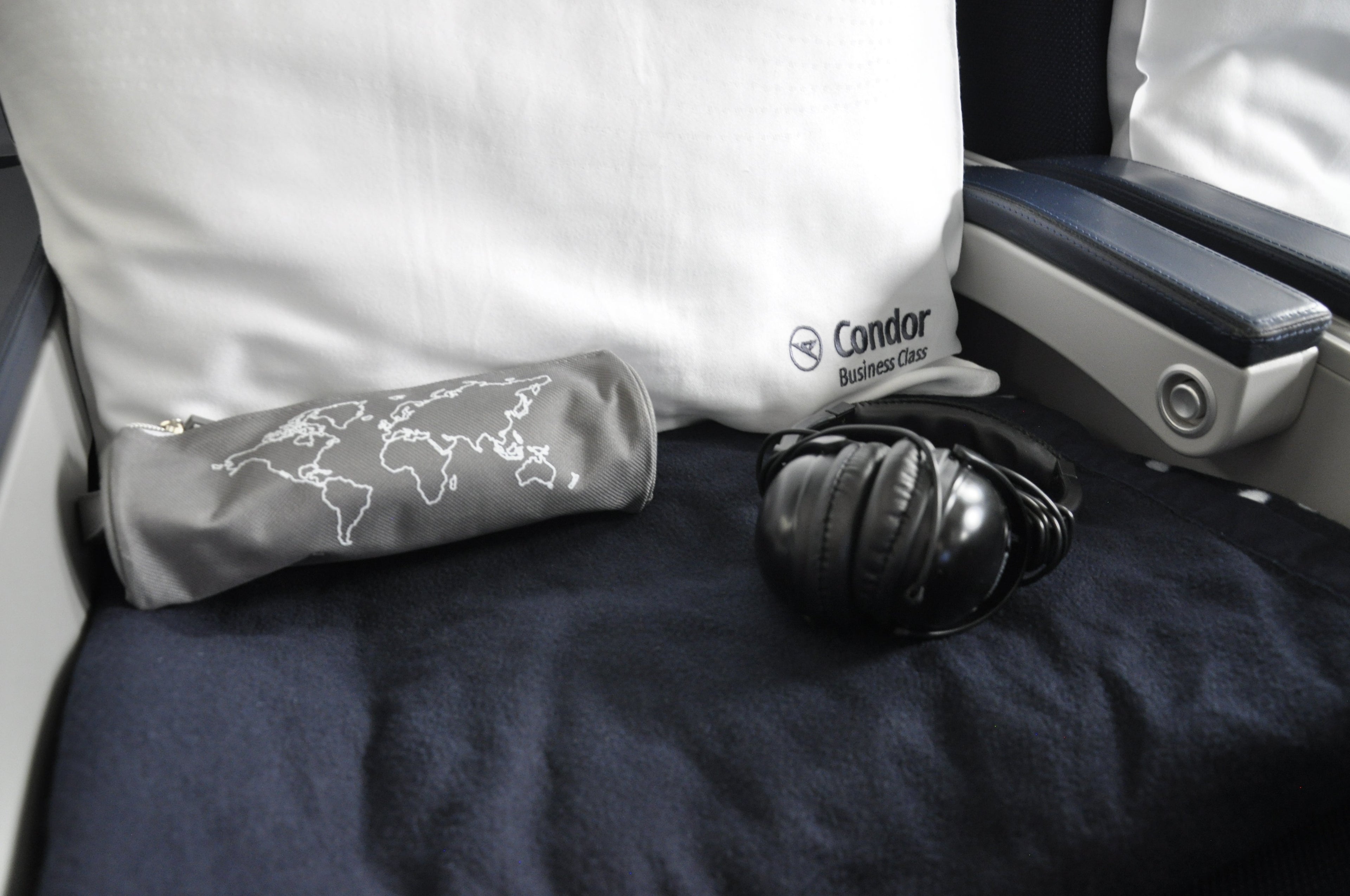 I found the Condor 767 business-class cabin to be pretty attractive, but the seat itself isn't one that I'd look forward to spending 10+ hours in. These days, long-haul international flights should have a fully lie-flat bed instead of one that is angle-flat. Shortly before departure, an announcement was made that there were three seats available in business class for the upgrade price of 695 euros (~$755). Nobody took the offer.