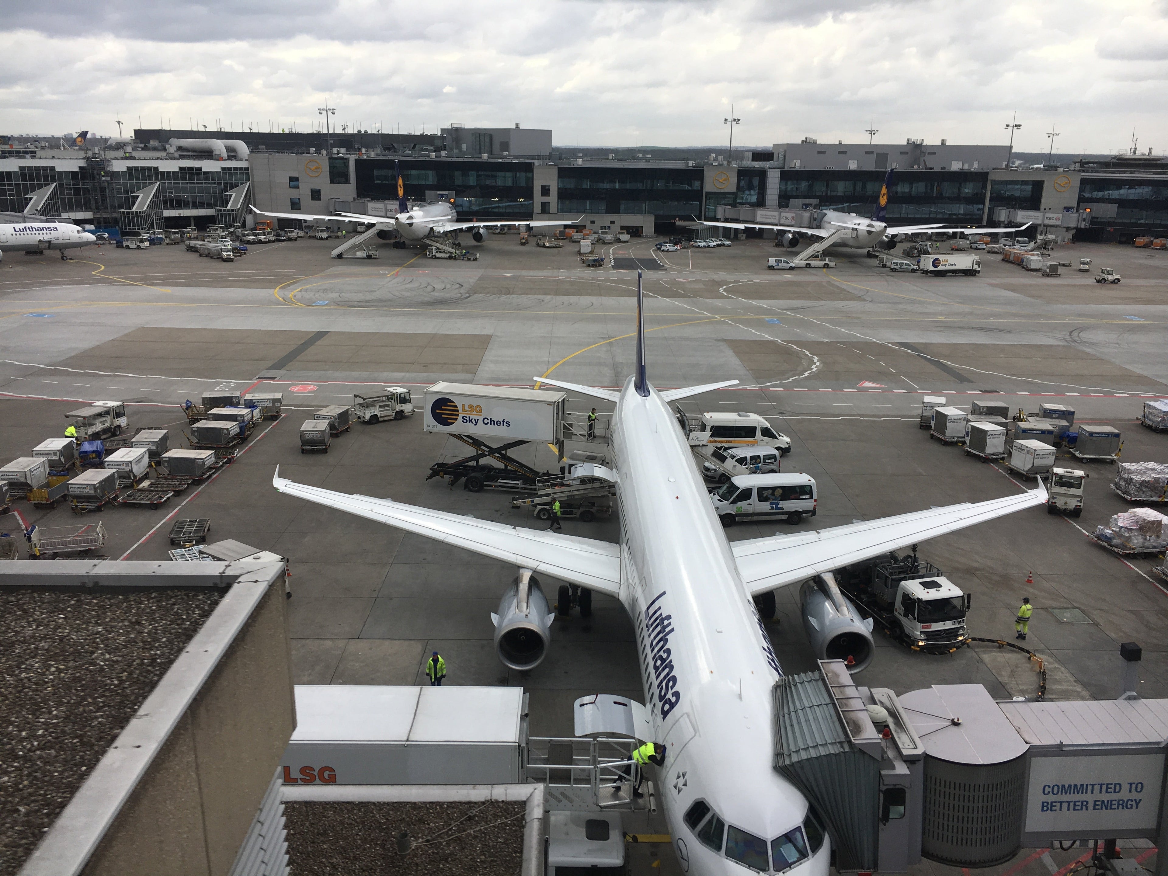 Upon leaving the Aircraft Interiors Expo, I checked in for my Condor flight at the Lufthansa counter in Terminal 2 of Hamburg Airport (HAM), where the desk agent gave me all three boarding passes I'd need that day: HAM-FRA, FRA-SEA and SEA-DEN. Upon landing in Frankfurt, I had barely an hour before my Condor flight to Seattle started boarding. In that brief time, I speed-walked from Concourse A to Concourse C.