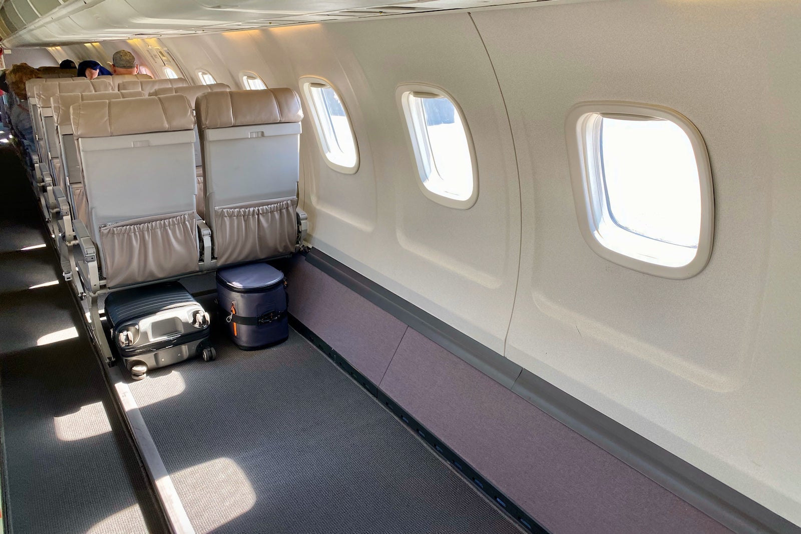 I was first aboard, and couldn't wait to check out the cabin of this 19-year-old Embraer 145.