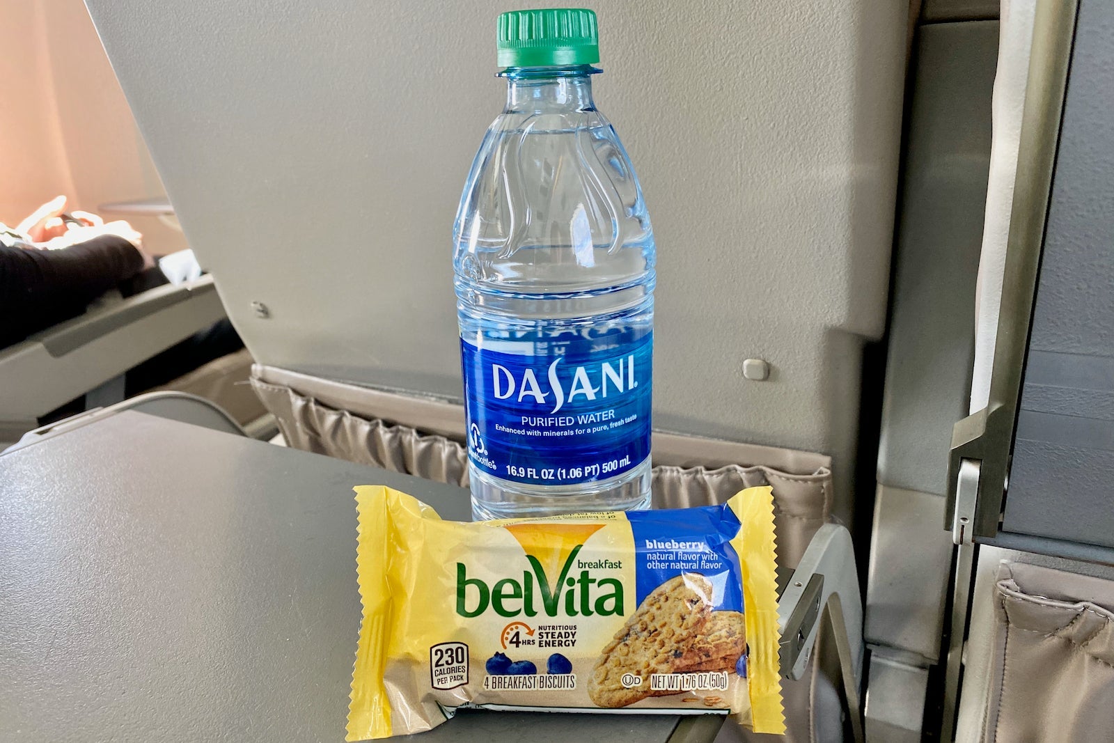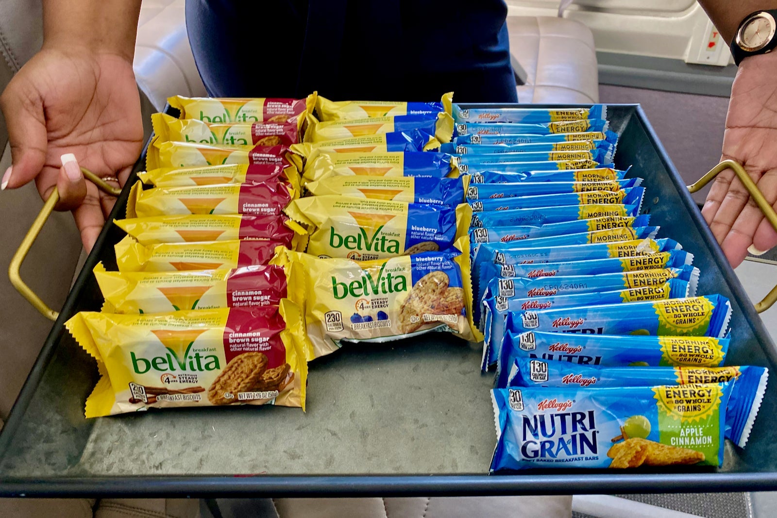 Once airborne, the incredibly friendly flight attendant, Zoe, came through the cabin with a snack tray consisting of Nutri-Grain bars and belVita Breakfast Biscuits.