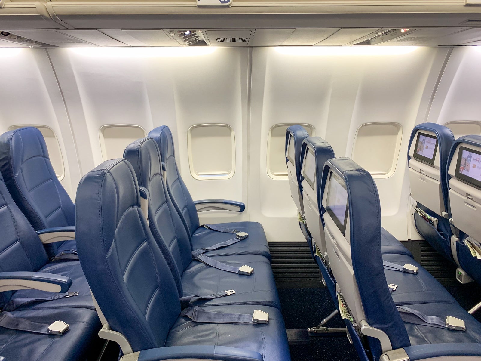 Of the 108 main-cabin seats on this flight (all in a 3-3 configuration), only about 30 were occupied, according to a flight attendant.