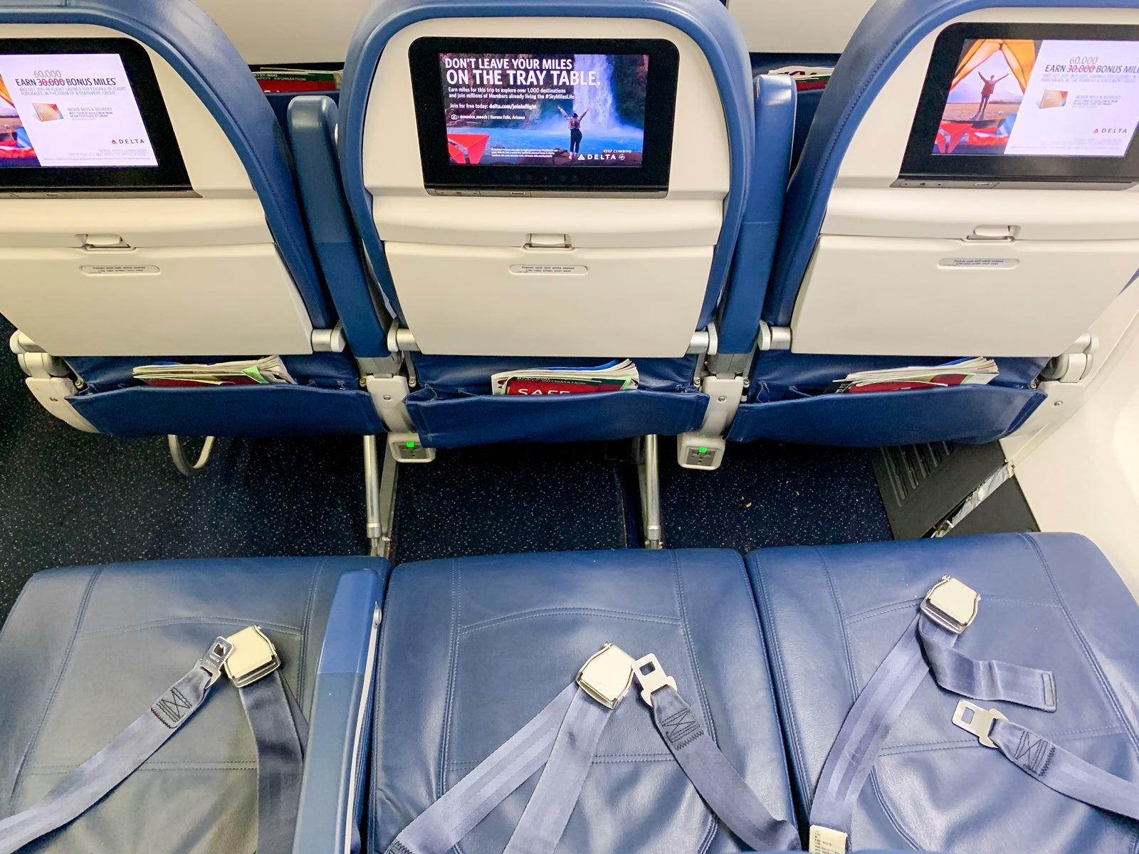 The cabin was bright and modern, and already the flight was seriously exceeding my expectations. After all, according to Delta, main-cabin seats have a width of 17.2 inches by 31 to 32 inches. But after I settled into my private row, I had more than 52 inches to spread out.