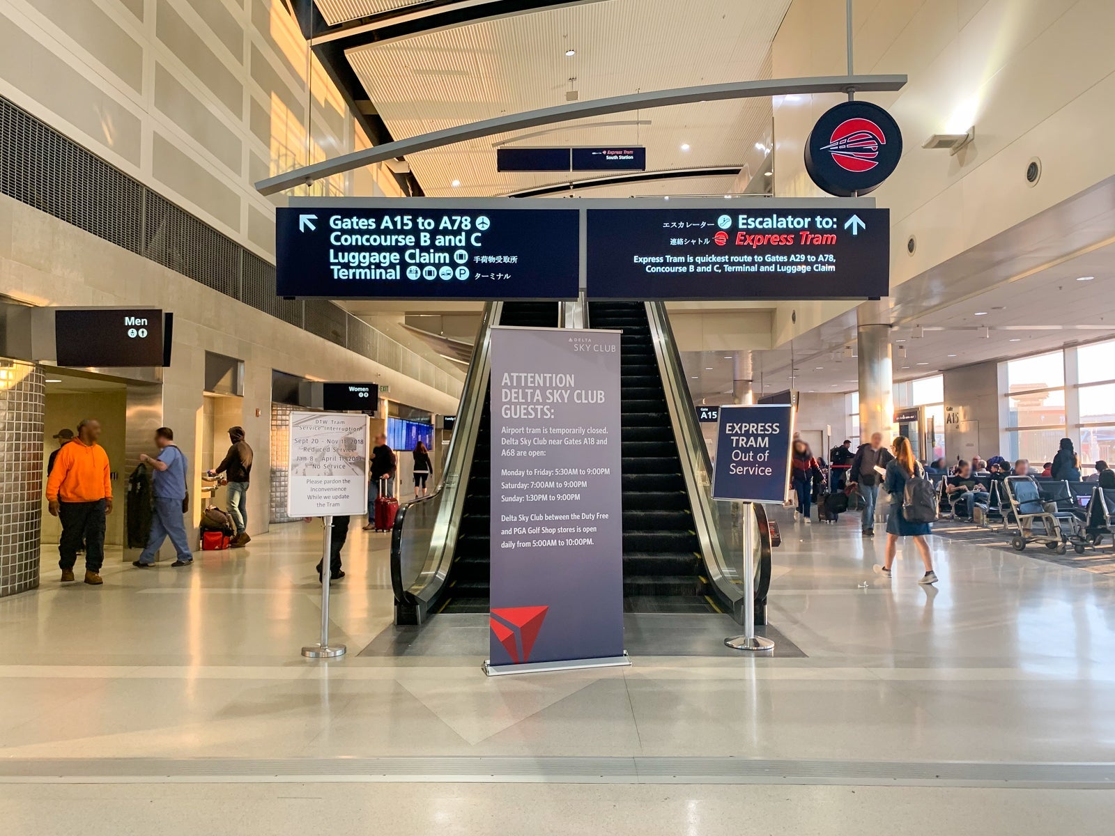 Sadly, even if the Express Tram hadn't been out of service, there was no time to check out the Delta Sky Club lounges, which I could have accessed thanks to the combination of my Platinum card and same-day Delta boarding pass.