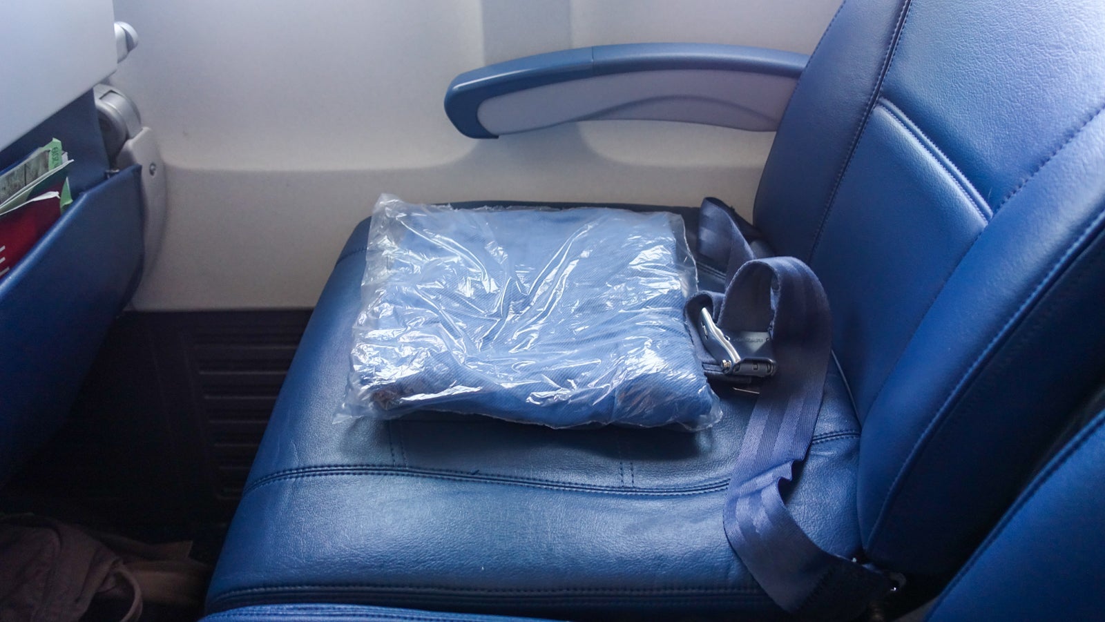 Though there were no amenities on the seat when I arrived, flight attendants were happy to provide everything from complimentary earbuds to blankets (albeit thin ones).