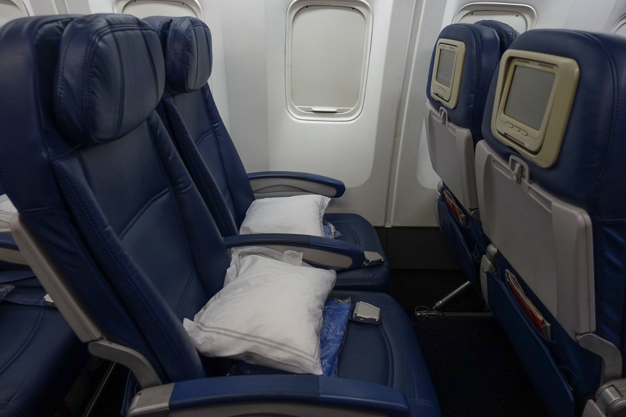 All of Delta's 767-300's have a relatively roomy 2-3-2 configuration (each seat offers 17.9 inches of width and between 31 and 32 inches of pitch) in economy, but you'll still definitely want to do your best to score a window seat or an aisle seat in one of the coupled seats along the cabin wall.