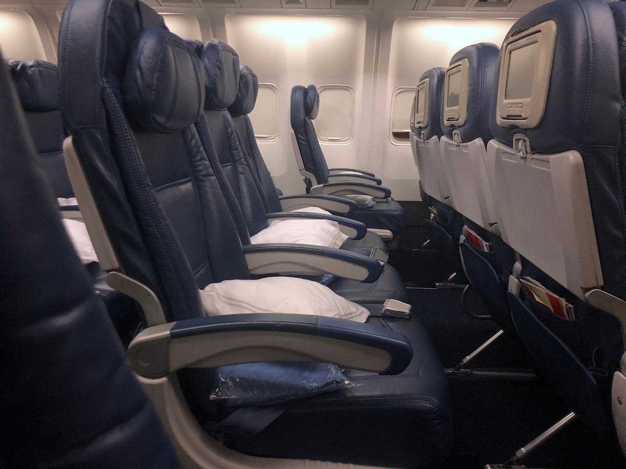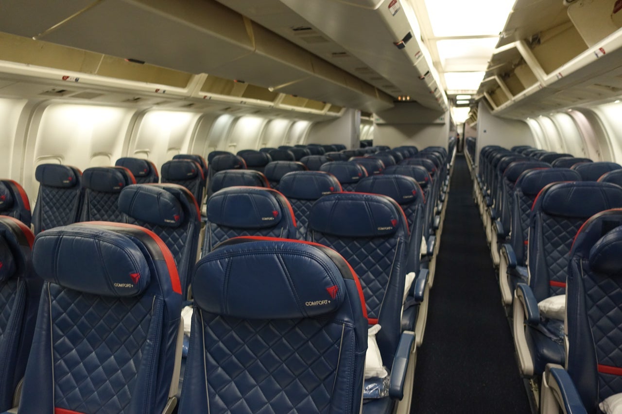 My Boeing 767 sported a rare configuration for Delta — it had 30 recliner seats in first class, 35 Delta Comfort+ seats, and 196 standard economy seats.