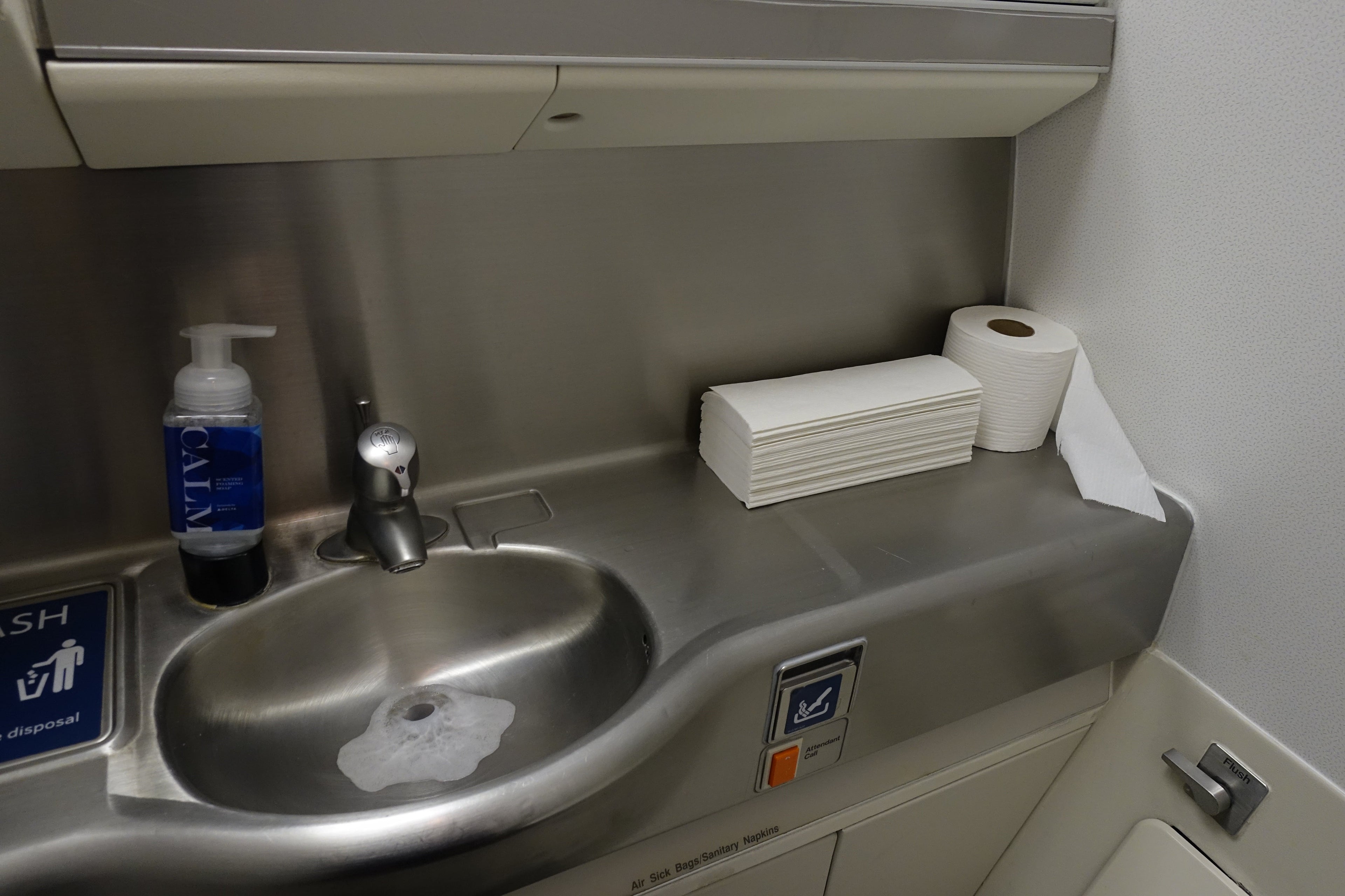 The bathrooms were kept very clean, and had foaming soap apparently meant to "calm" travelers. But I actually found this lav to be less cramped then some of the newer airplane restrooms.