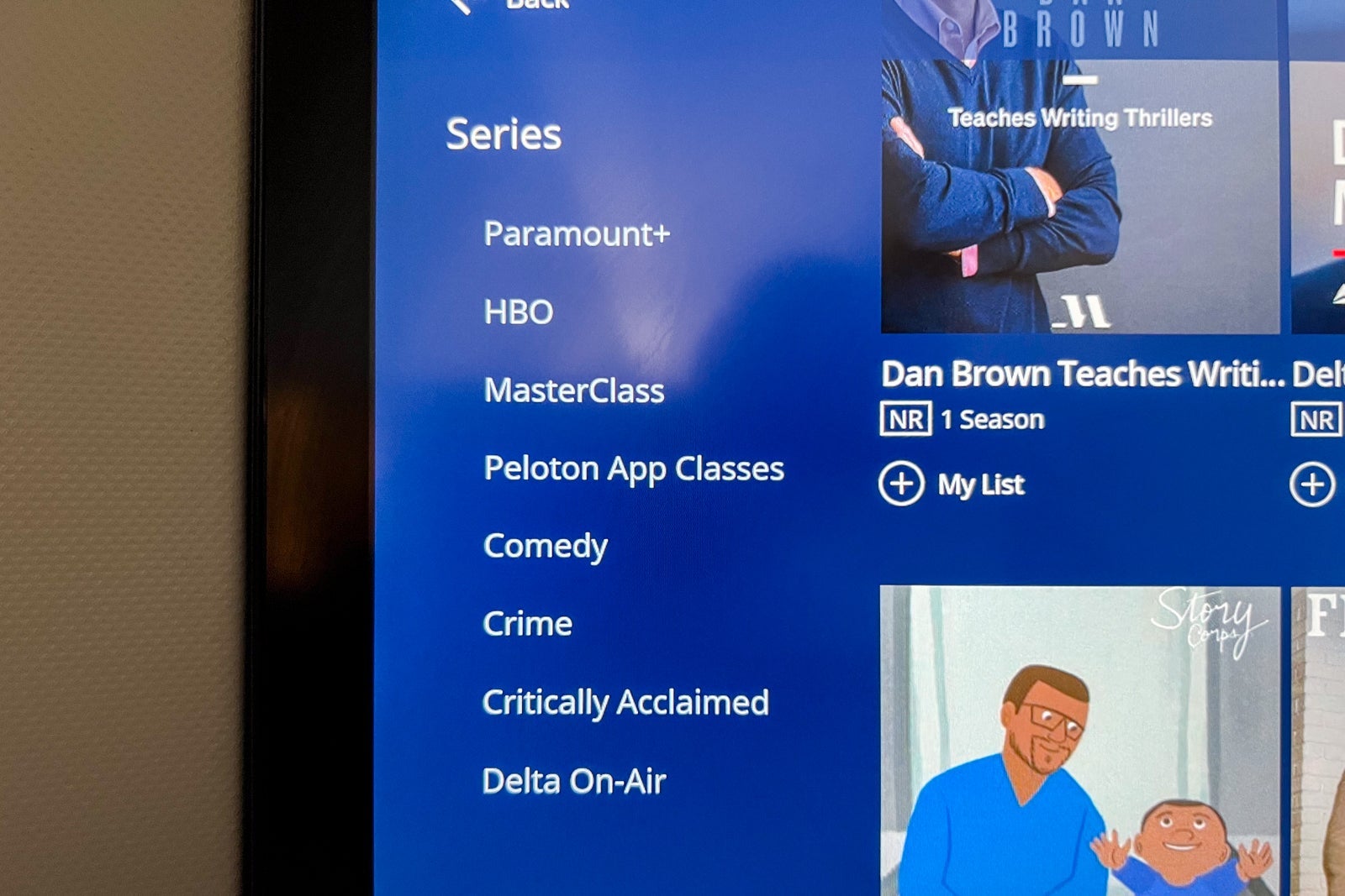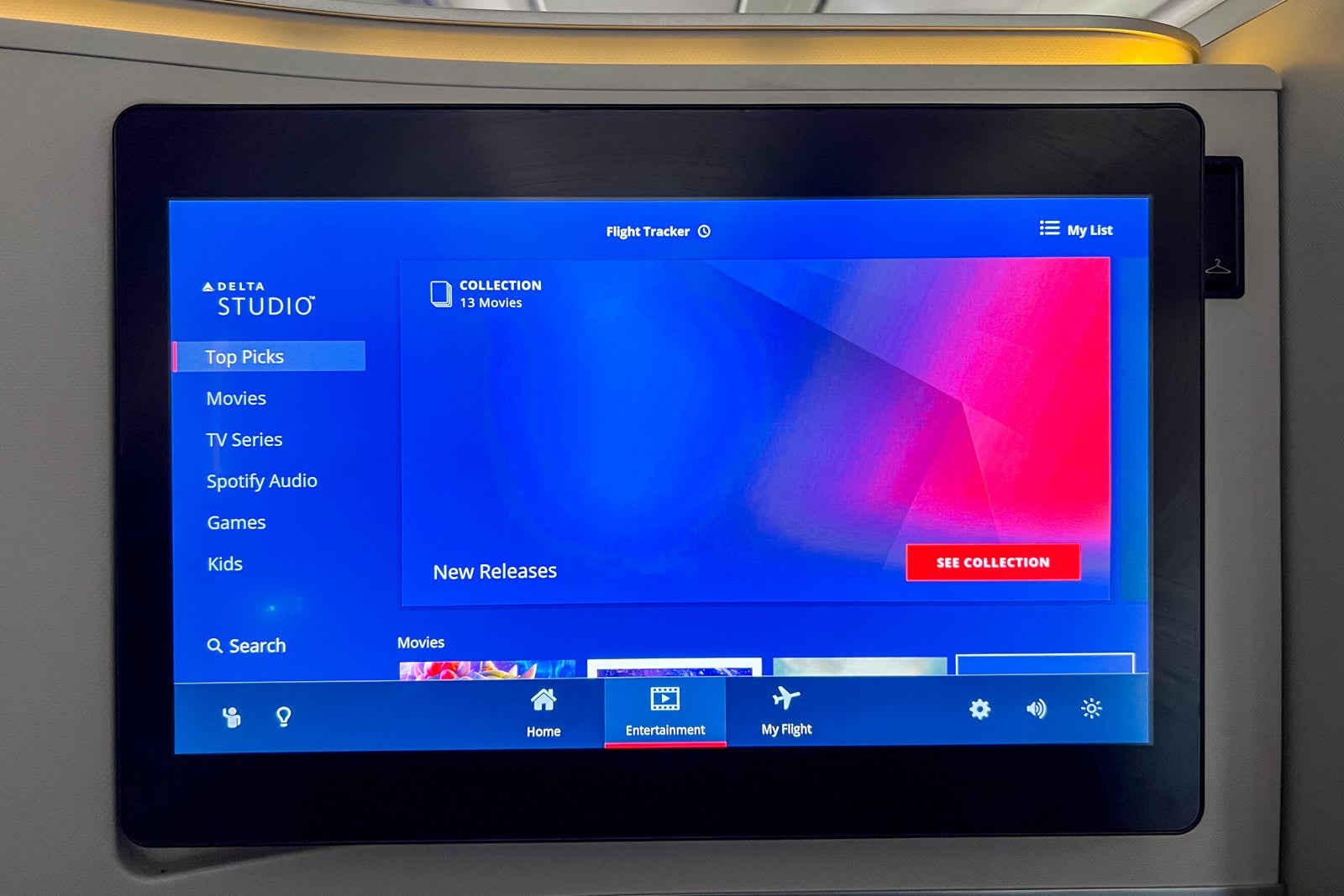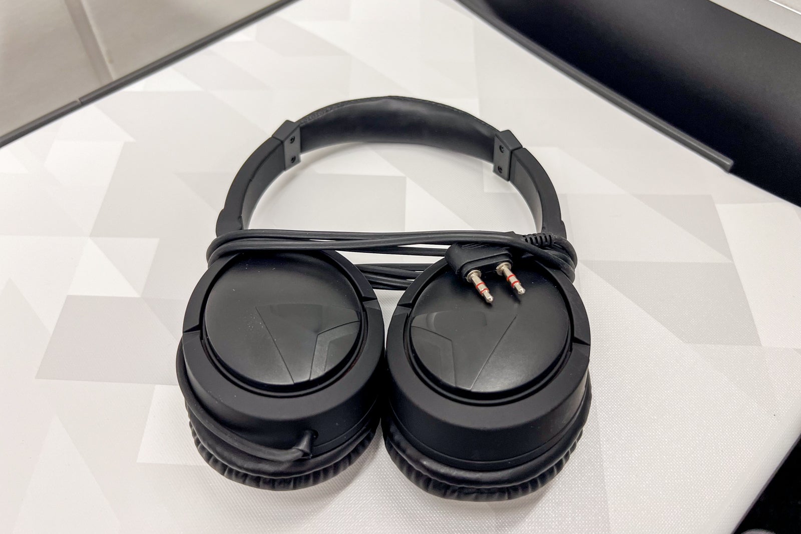 Delta provides basic, over-the-head noise-canceling headphones that you must plug into the seatside jack. While not super high-quality, they worked well enough. Unfortunately, there's no option to pair your own noise-canceling Bluetooth headphones with the entertainment system on Delta's A330-900neos, which would be a nice enhancement.