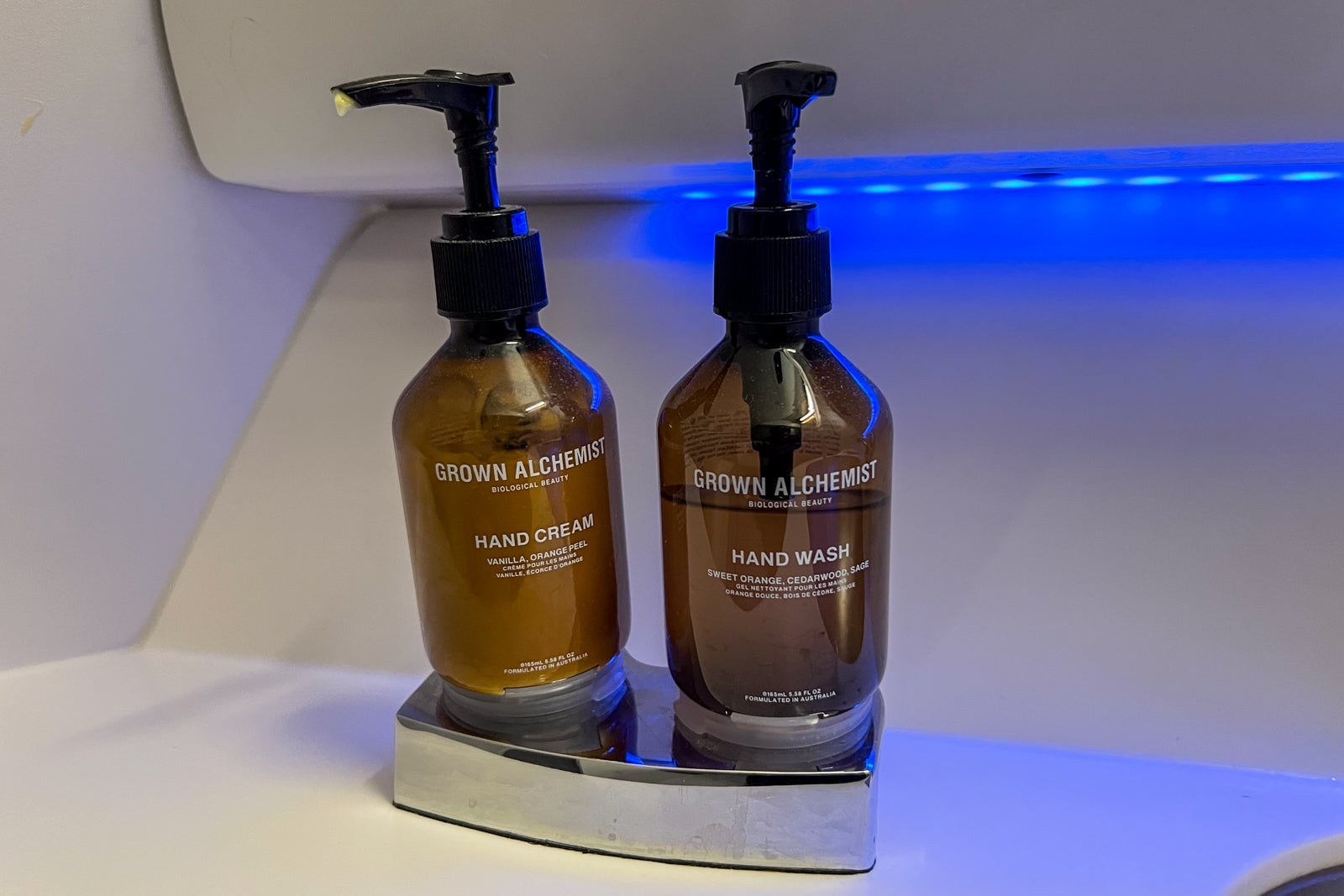 That said, the flight attendants kept both restrooms very clean throughout the flight, and the Grown Alchemist hand wash and lotion provided in them were nice touches.