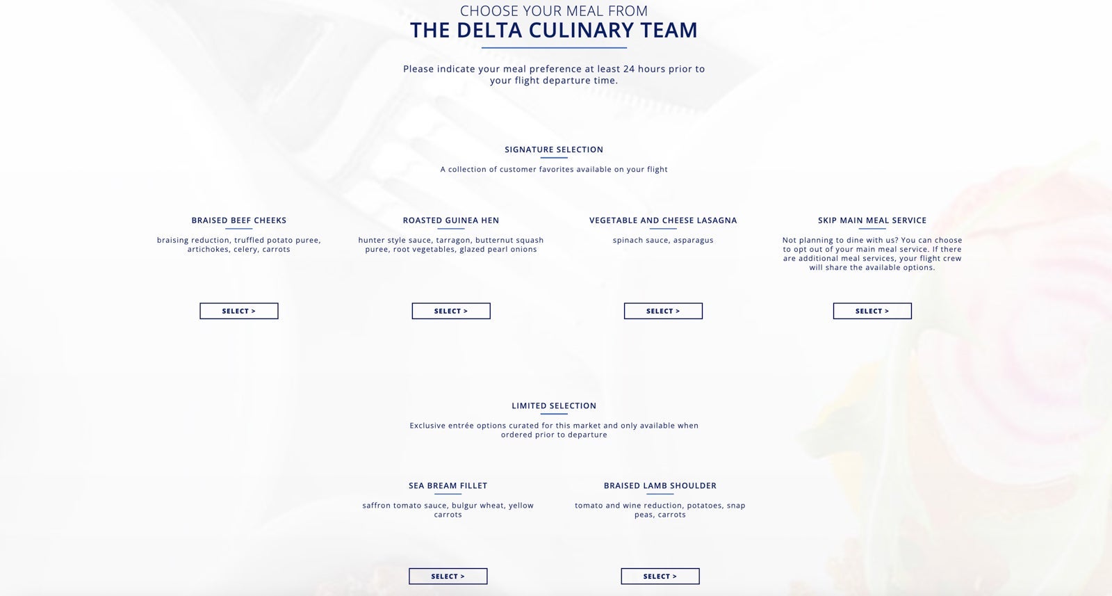 A week before my flight, I received an email from Delta asking me if I'd like to preselect my meal.