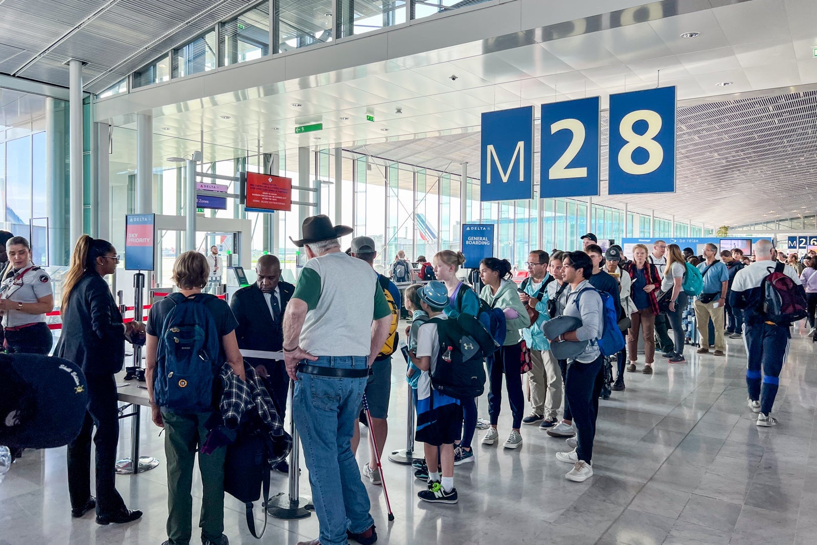 When I arrived at the gate, general boarding had already started and there was a huge line for the main cabin. The SkyPriority line was much shorter. But even though there were just seven travelers ahead of me, it still took about 15 minutes since the single agent working SkyPriority was checking each individual's passport, asking them questions about their trip and then waving them through to the automated boarding gates.