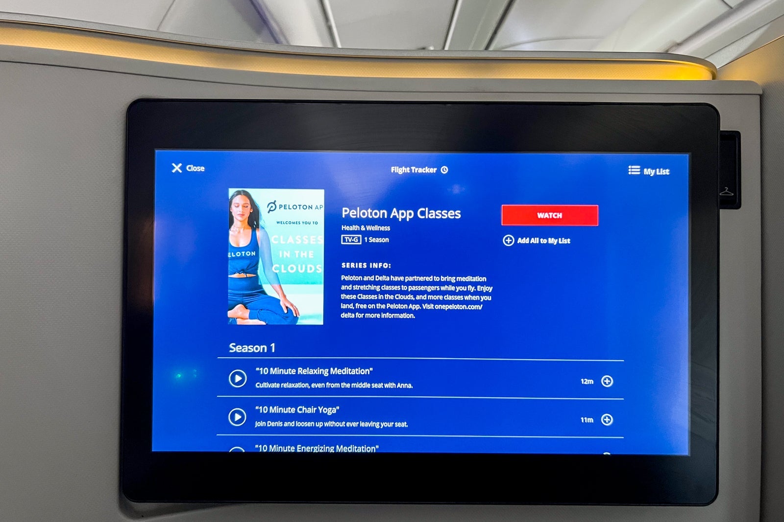 I brought a measuring tape along with me and clocked the seat width between armrests to be 22 inches (as opposed to the 22 1/2 inches Delta lists), while the distance from my seatback cushion to my entertainment screen was a roomy 36 inches.