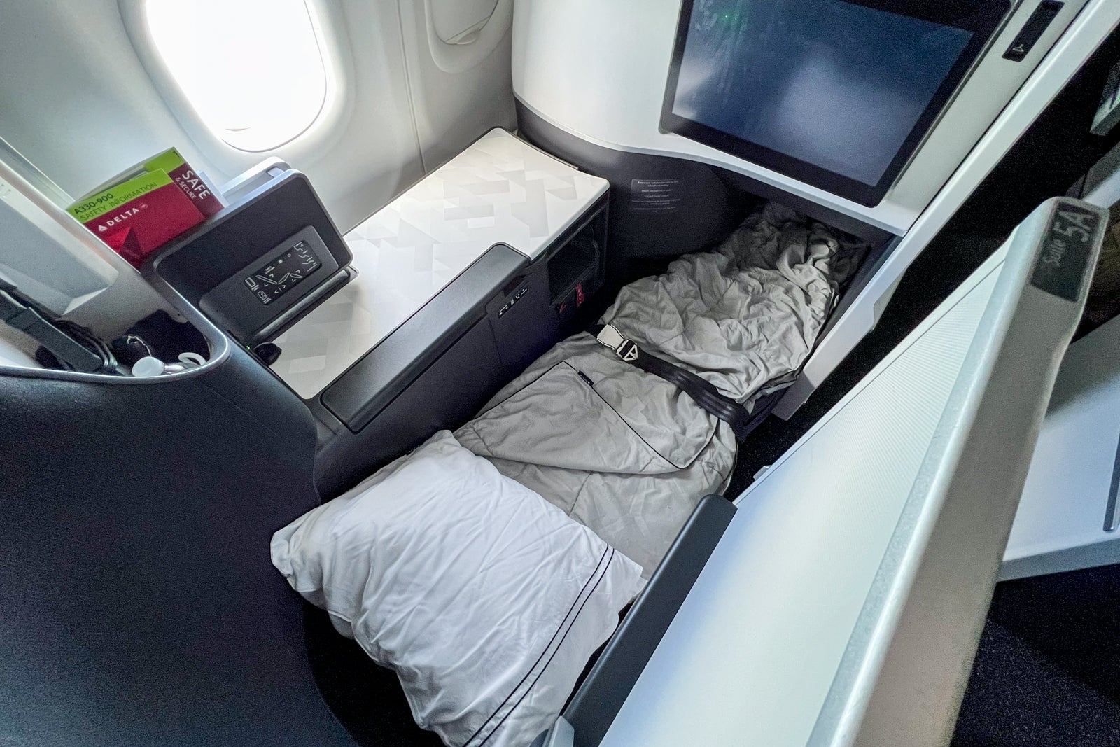 The Delta One seats themselves are attractively designed and feel very private thanks to their closing doors. The bedding is comfortable and environmentally friendly, while the amenity kits, though simple, support a great brand and contain high-end products like Grown Alchemist toiletries.
