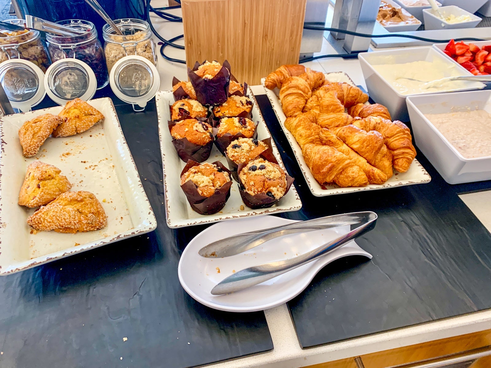 I was impressed by the food spread, too. It was still breakfast time while I visited, so I got to choose between numerous standard breakfast items like scrambled eggs, pastries, fruit and yogurt.