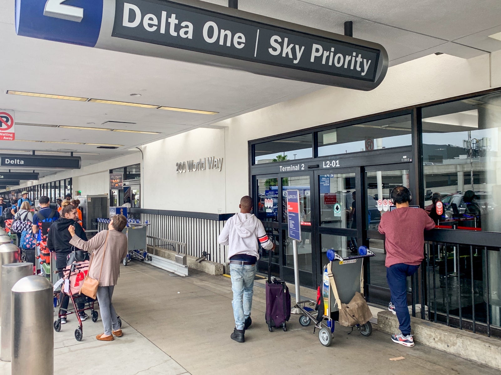 Delta operates flights from Terminal 2 and Terminal 3 at LAX, and my boarding pass indicated that I'd be departing from T2. Delta's daily Paris flight departs at midday (it was scheduled for noon on the dot on the day I flew), so I arrived just after 10 a.m. (Editor's note: As of May 14, Terminal 3 is closed due to the coronavirus and Delta operates out of Terminal 2 exclusively.)