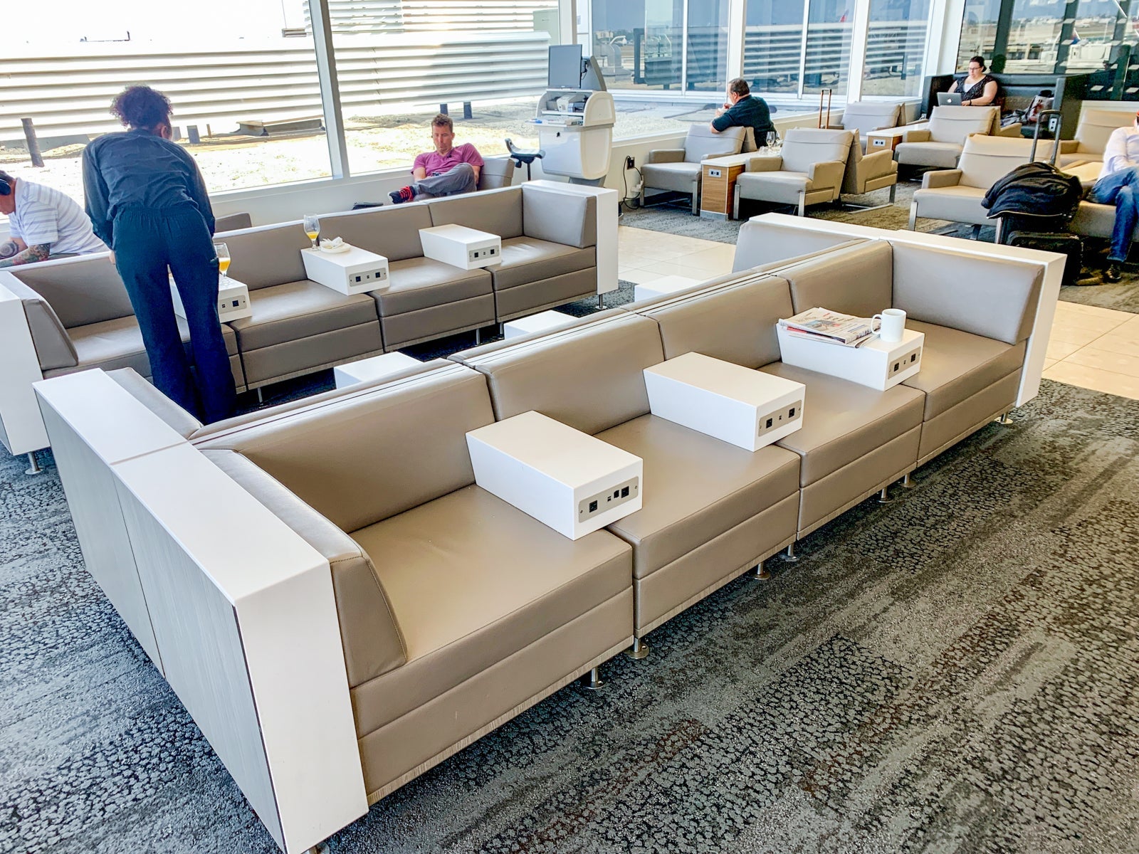 The back room was less crowded and had plenty of seats, and, just as importantly, outlets for passengers waiting for a flight. I found the furniture to be in great condition overall, and I didn't struggle to find a place to sit.