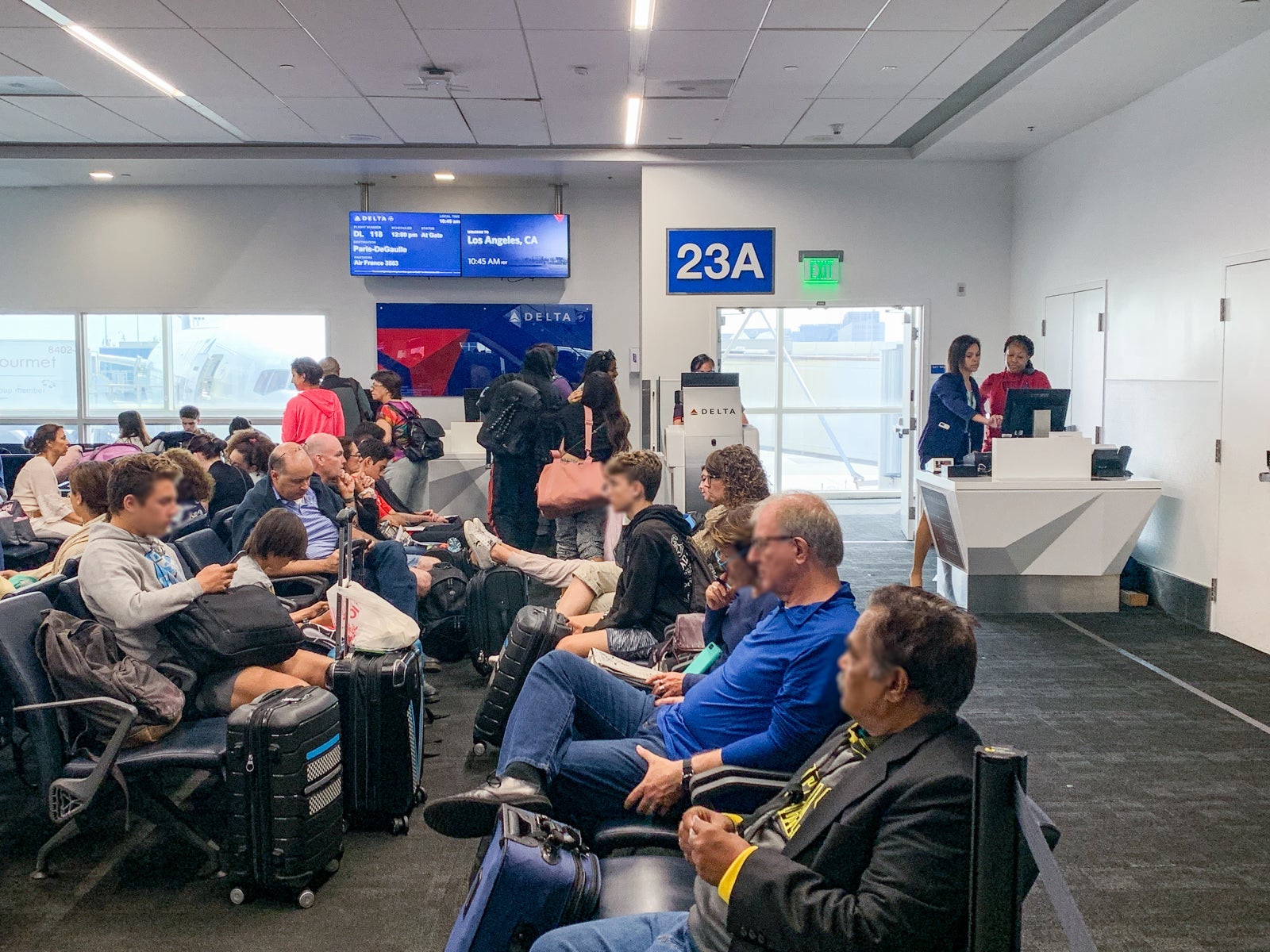 After having a bite to eat and doing a little work, I moseyed over to the gate area at around 10:45 a.m., 15 minutes before boarding was scheduled to begin, to find it crowded.