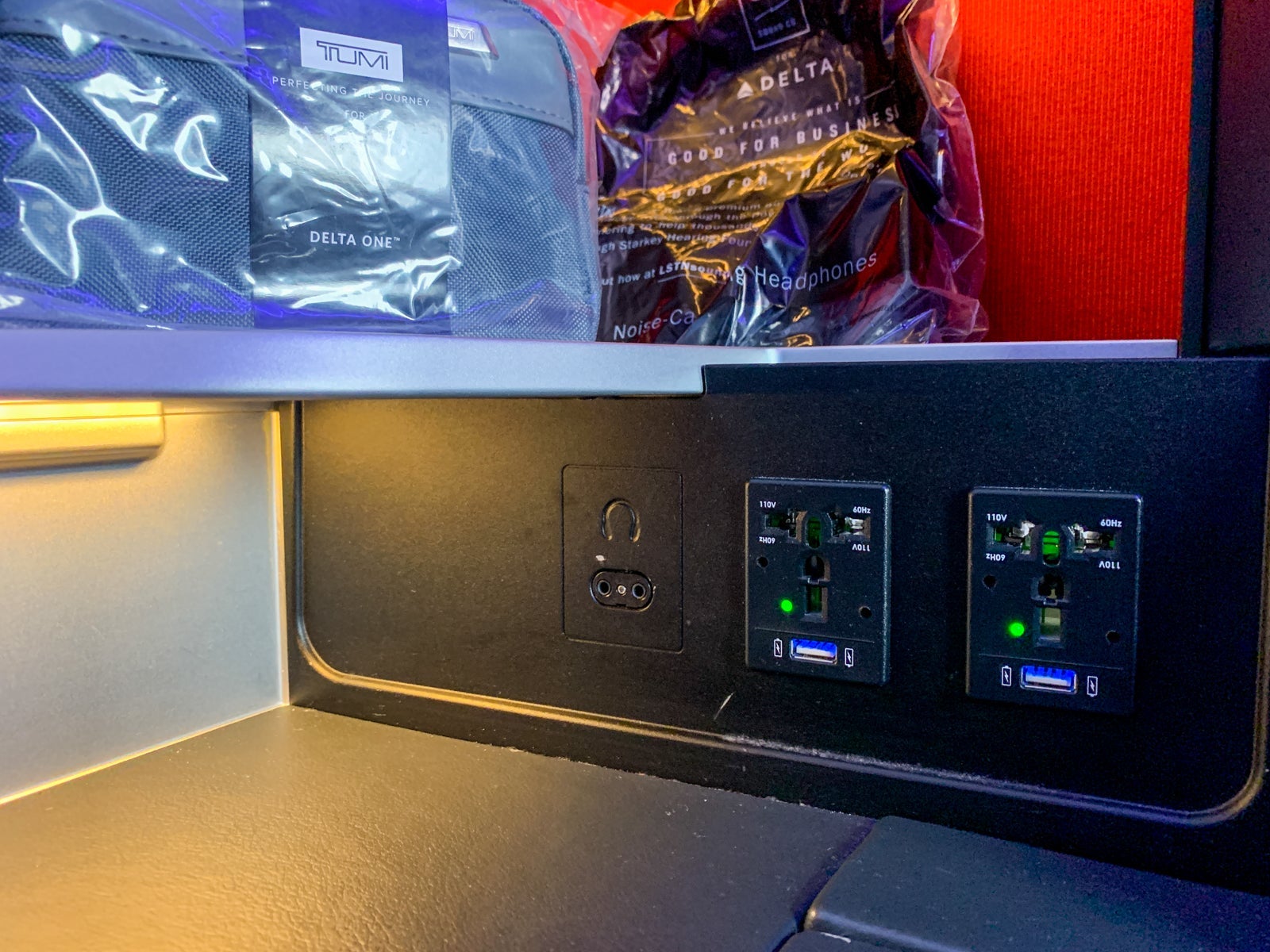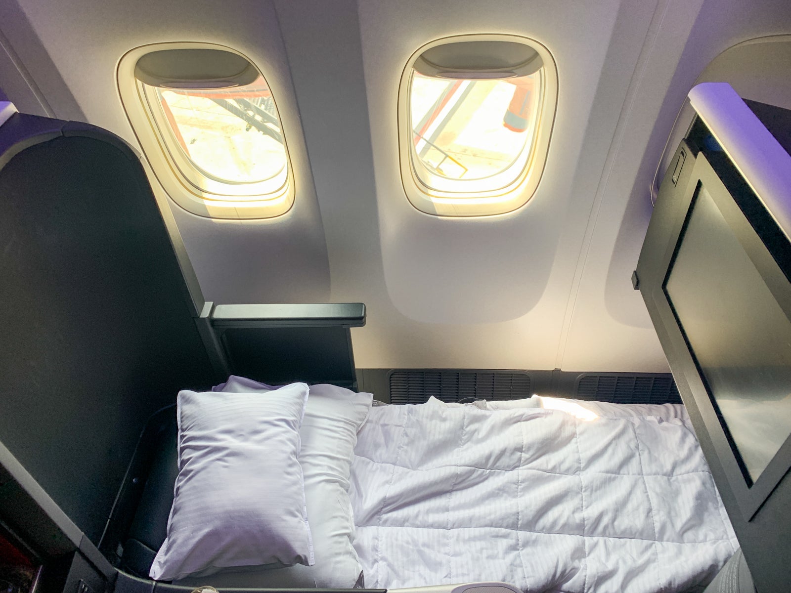 I appreciated that this aircraft had two universal AC outlets and two USB ports. I was expecting to do quite a bit of work on the flight, so I loved that I was able to stay fully charged throughout.
